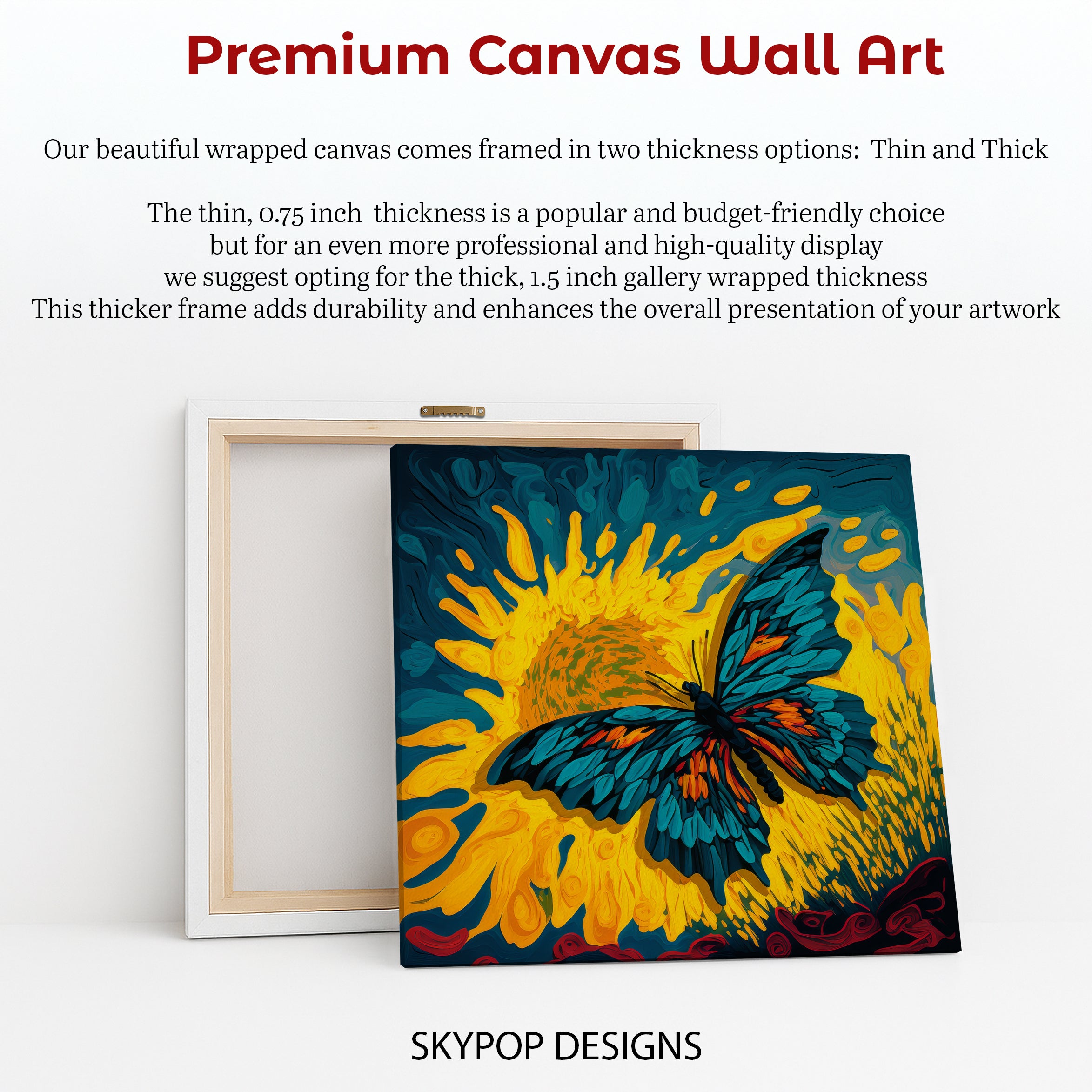 Transform your living space with this striking butterfly canvas wall art, a captivating piece that embodies the beauty of nature. This vibrant poster or canvas wall art showcases a bold butterfly amidst a radiant yellow bloom, creating a focal point that inspires joy and wonder. The dynamic colors, including deep blues, rich yellows, and pops of orange and red, evoke a sense of energy and renewal, perfect for a modern living room or a creative office space. The abstract style blended with natural elements makes this canvas wall art a unique statement piece, ideal for bohemian or contemporary decor. Elevate your bedroom or sunroom with the uplifting presence of this stunning butterfly artwork. The striking contrast and textured brushstrokes add depth and visual interest, ensuring this poster is a conversation starter. It's a perfect addition to any home seeking a touch of vibrant, nature-inspired art, offering a fresh perspective and enhancing your personal style. This beautiful canvas art is also a fantastic gift for housewarming, birthdays, or any occasion, bringing a splash of nature's splendor indoors. High-quality printing ensures the vivid colors and intricate details of the butterfly and floral elements are perfectly preserved on canvas wall art. Embrace the transformative power of art and elevate your home with this captivating butterfly poster, a timeless piece that celebrates the beauty of the natural world. Infuse your walls with color and life, making your space a sanctuary of style and inspiration today.