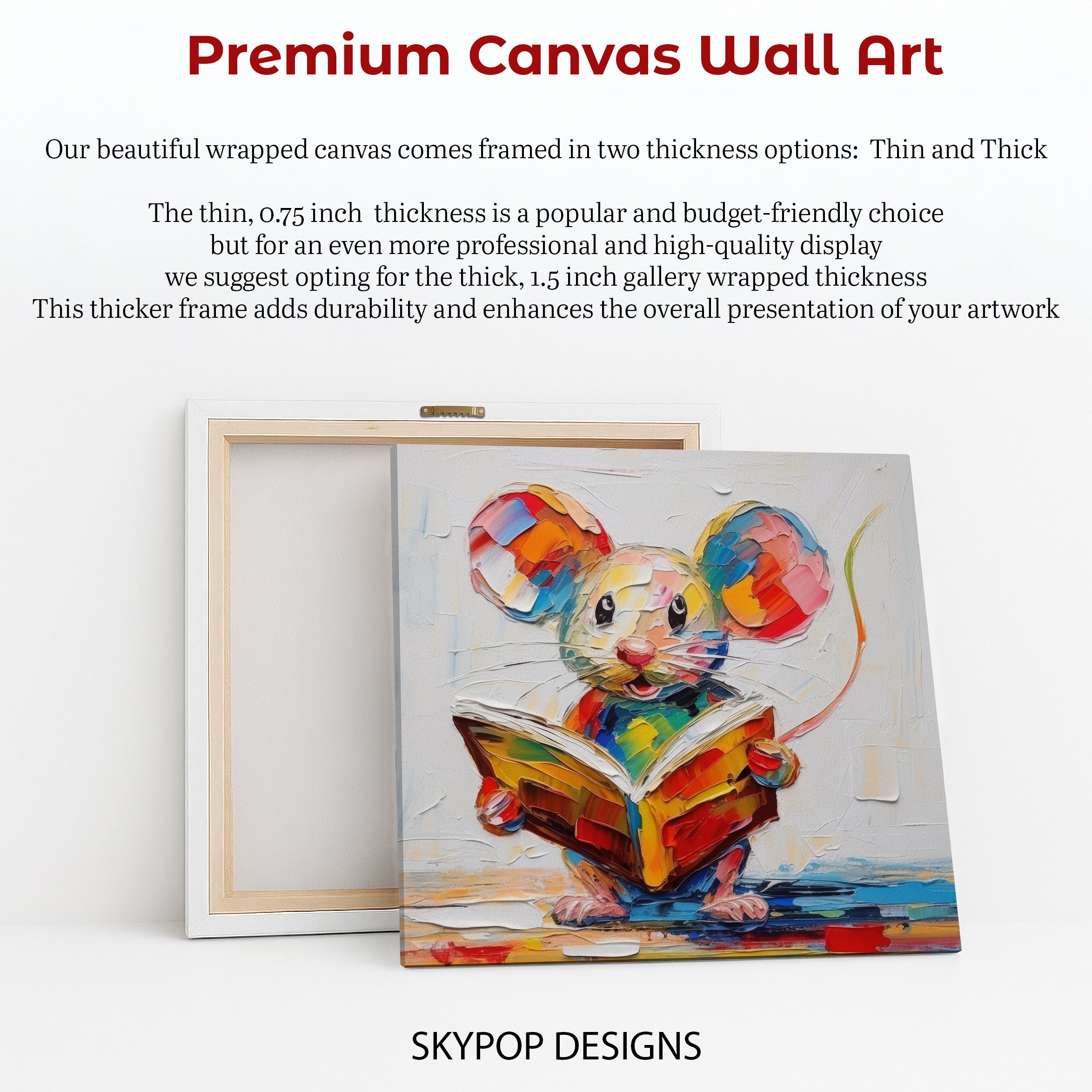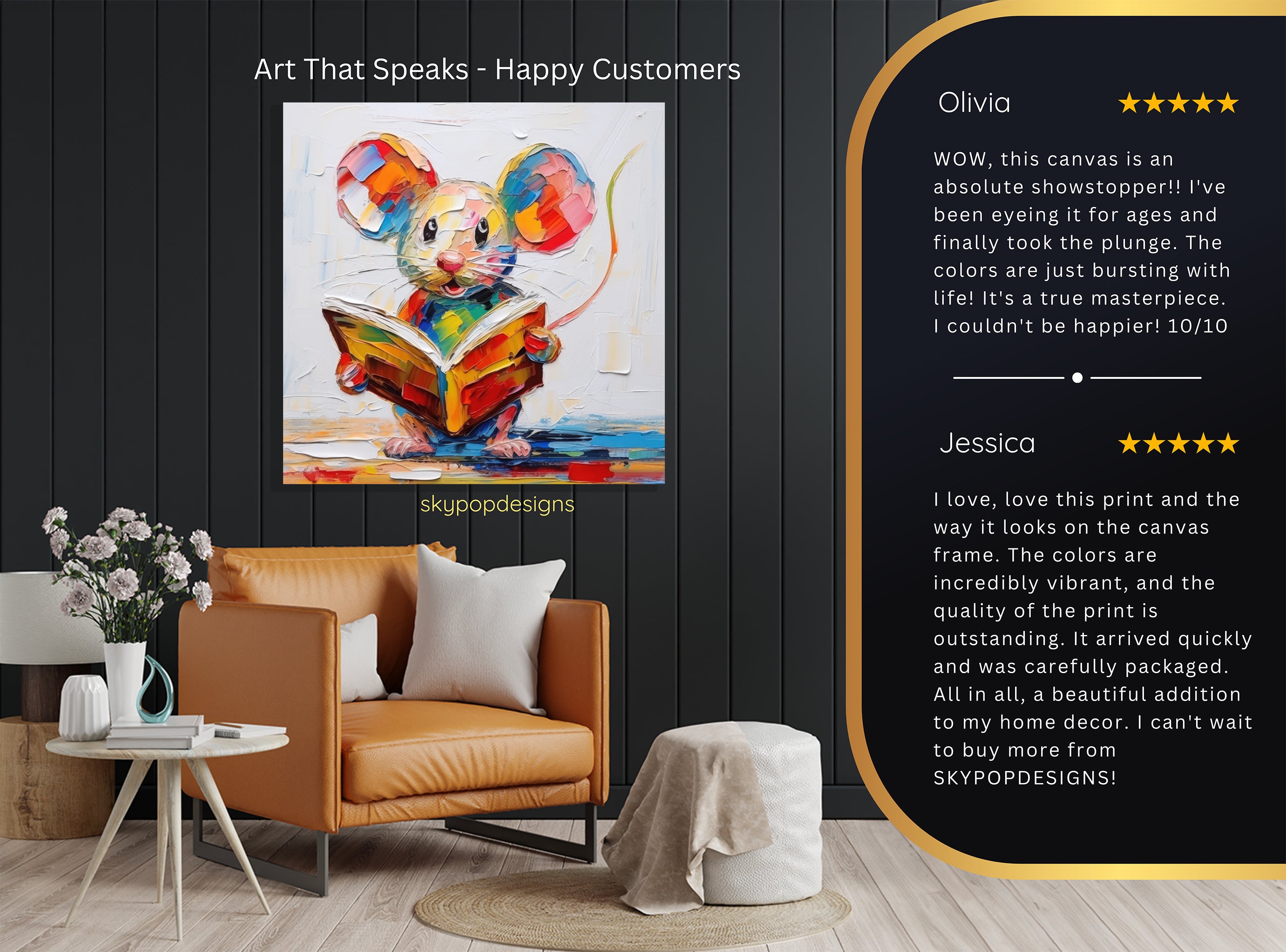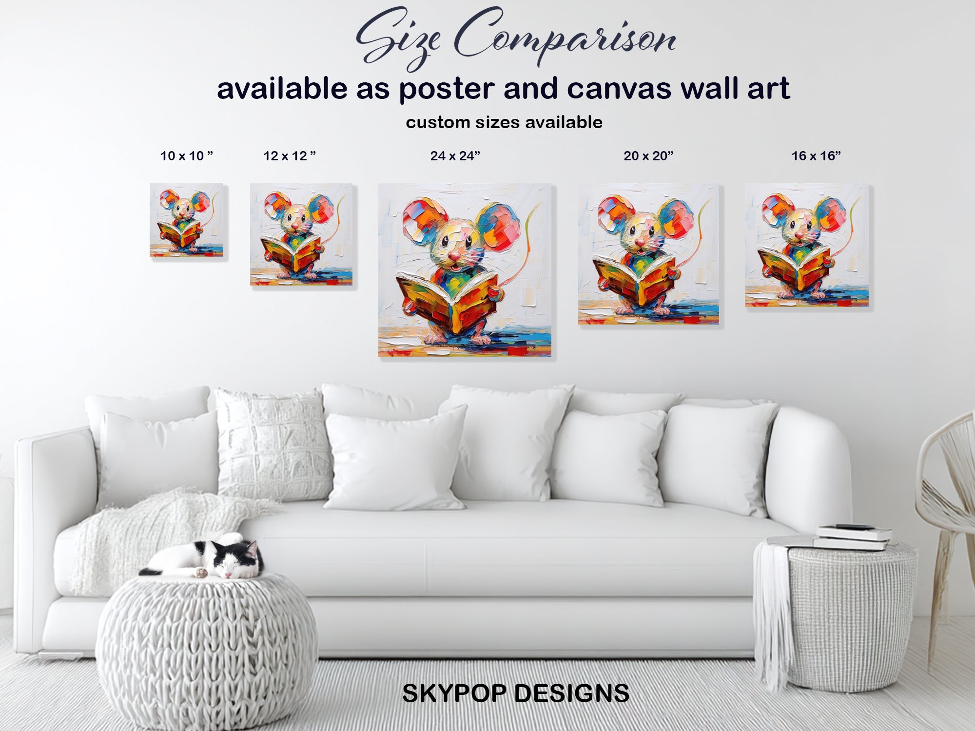 Keywords: Whimsical Art, Animal Art, Contemporary Decor, Modern Decor, Living Room Art, Children's Room Decor, Bedroom Wall Art, Office Art, Multicolor Wall Art, White Art, Yellow Art, Red Art, Mouse Art, Mouse Poster, Canvas Wall Art, Wall Decor, Home Decor, Inspirational Art, Book Lover Gift, Animal Enthusiast Gift, Housewarming Gift, Birthday Gift, Vibrant Wall Art, Colorful Art, Textured Art, Impasto Style, Cute Animal Art, Playful Decor, Unique Wall Art, Statement Piece