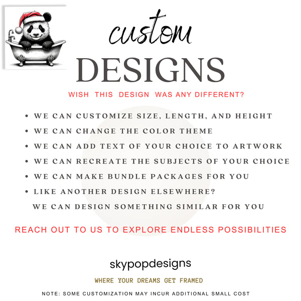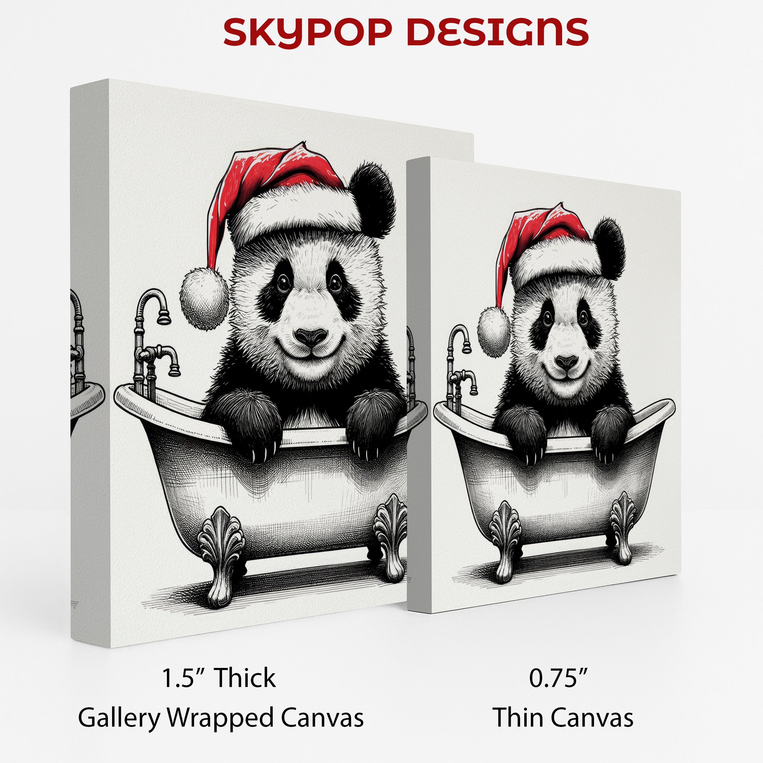 Transform your space with this charming panda canvas wall art, featuring a cheerful panda enjoying a bath while wearing a festive Santa hat. This unique piece combines whimsical animal art with a touch of holiday spirit, making it a perfect addition as poster or canvas wall art for any room. The striking black and white illustration, accented with a vibrant red Santa hat, adds a playful yet sophisticated element to your home decor. Ideal for modern bathrooms, cozy children's rooms, or lively living areas, this artwork brings joy and personality. This panda poster is perfect for those who appreciate humorous and endearing artwork. It’s a fantastic gift idea for Christmas, housewarmings, or birthdays, sure to bring a smile to anyone's face. The detailed linework and expressive panda face capture a sense of calm and happiness, creating a captivating focal point on any wall. Elevate your home with this delightful panda canvas art that celebrates the fun side of the holidays. This versatile artwork looks great in bohemian or minimalist settings, offering a pop of personality. High-quality printing ensures the crisp details of the panda and the festive hat stand out. Add a touch of playful cheer and relaxation to your decor with this humorous holiday-themed wall art. Make your walls memorable with this engaging panda Christmas bath artwork today.