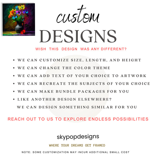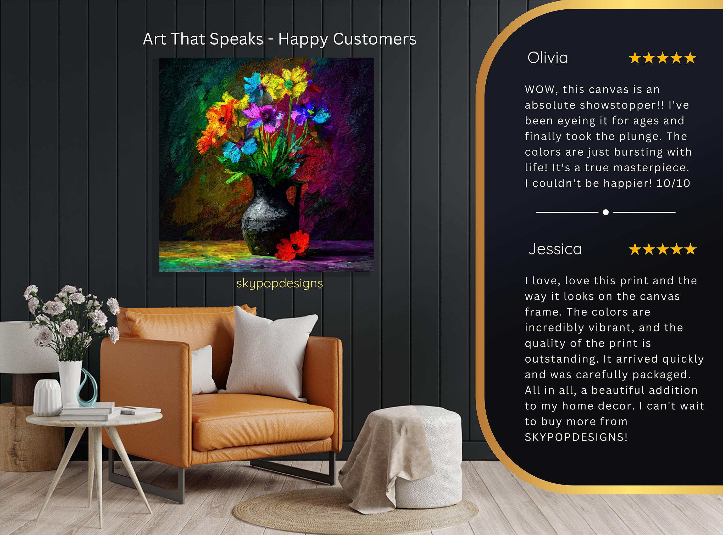 At SKYPOPDESIGNS, we specialize in high-quality canvas and poster prints designed to bring sophistication and style to your space. Please note that our designs are not created with 3D textures or as original oil, acrylic, or watercolor paintings; they are instead HD reproductions of original artwork. This approach allows us to offer these visually stunning pieces at competitive prices, ensuring you receive top-tier, maintenance-free art that's easy to enjoy.