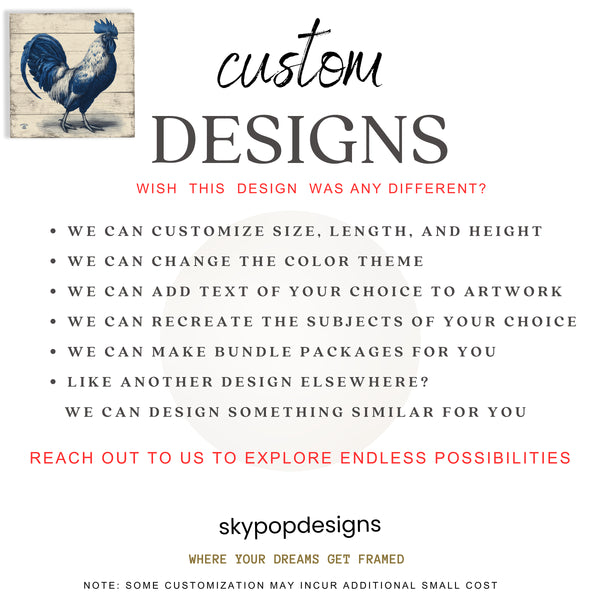 Keywords: Rooster Wall Art, Blue Rooster Art, Farmhouse Decor, Rustic Wall Art, Vintage Animal Art, Canvas Wall Art, Kitchen Decor, Dining Room Art, Entryway Decor, Living Room Art, Blue and White Art, Country Living Decor, Traditional Art, Horse Art, Farm Animal Art, Housewarming Gift, Gift for Her, Gift for Him, Home Decor, Wall Decor, Canvas Print, Blue Artwork, Rustic Charm, Vintage Artwork, Animal Print, Farmhouse Kitchen, Blue Wall Art, Traditional Decor, Home Accents, Specialty Decor