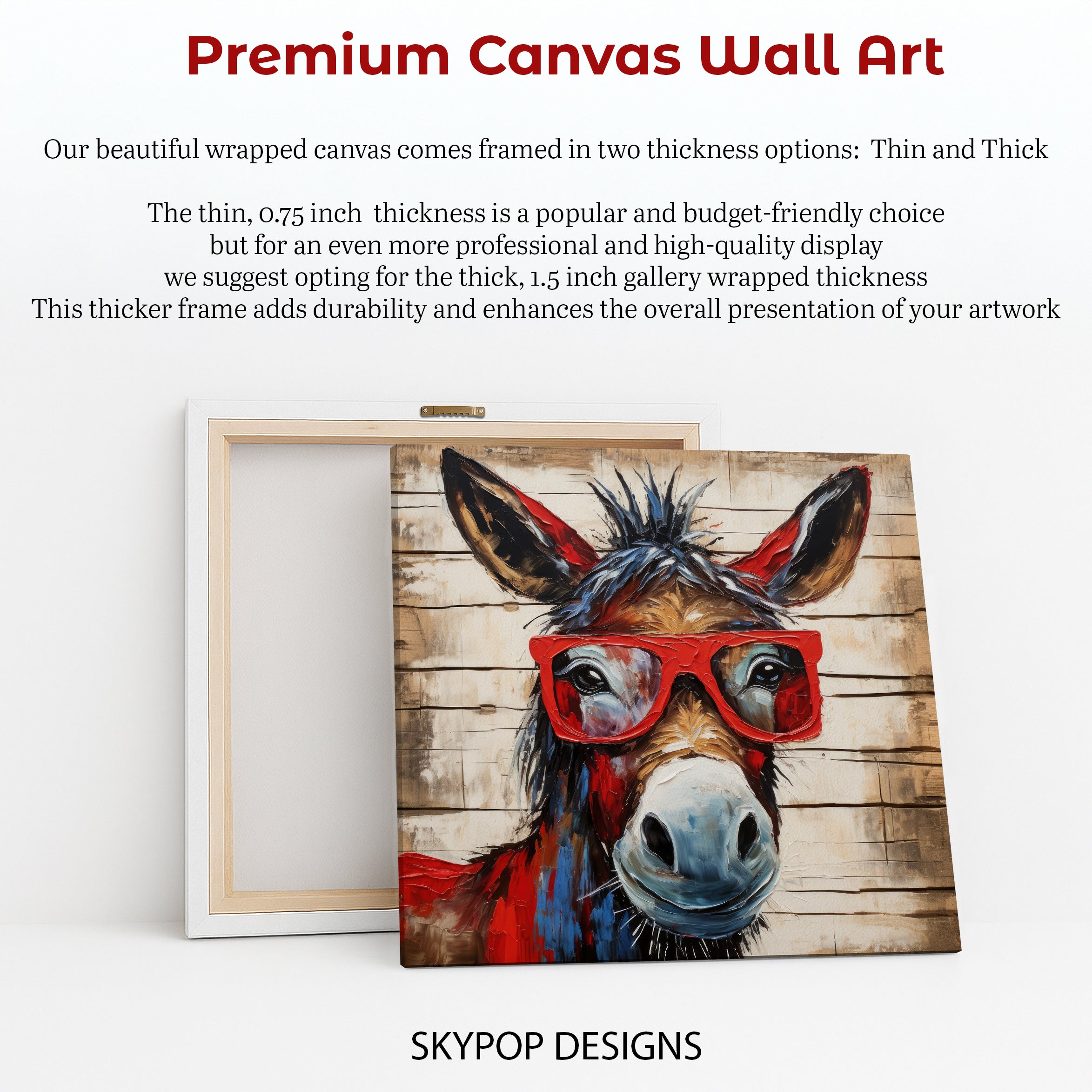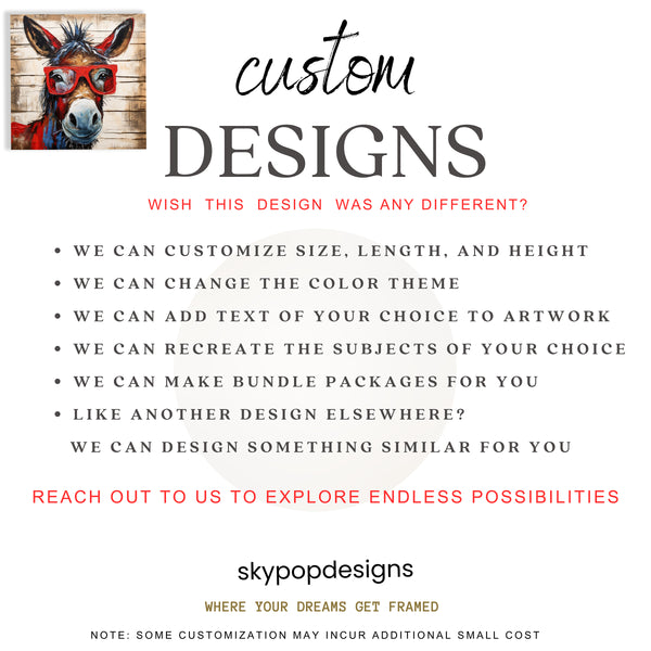 Keywords: Donkey Art, Canvas Wall Art, Animal Art, Contemporary Art, Whimsical Art, Hipster Donkey, Red Glasses Art, Modern Decor, Bohemian Decor, Rustic Decor, Living Room Art, Office Wall Art, Game Room Decor, Entryway Art, Multicolor Art, Red Art, Brown Art, Black Art, Animal Lovers Gift, Art Enthusiast Gift, Home Decor, Wall Poster, Statement Art, Quirky Art, Humorous Art, Textured Brushstrokes, Vibrant Colors, Unique Artwork, Canvas Print, Wall Decor