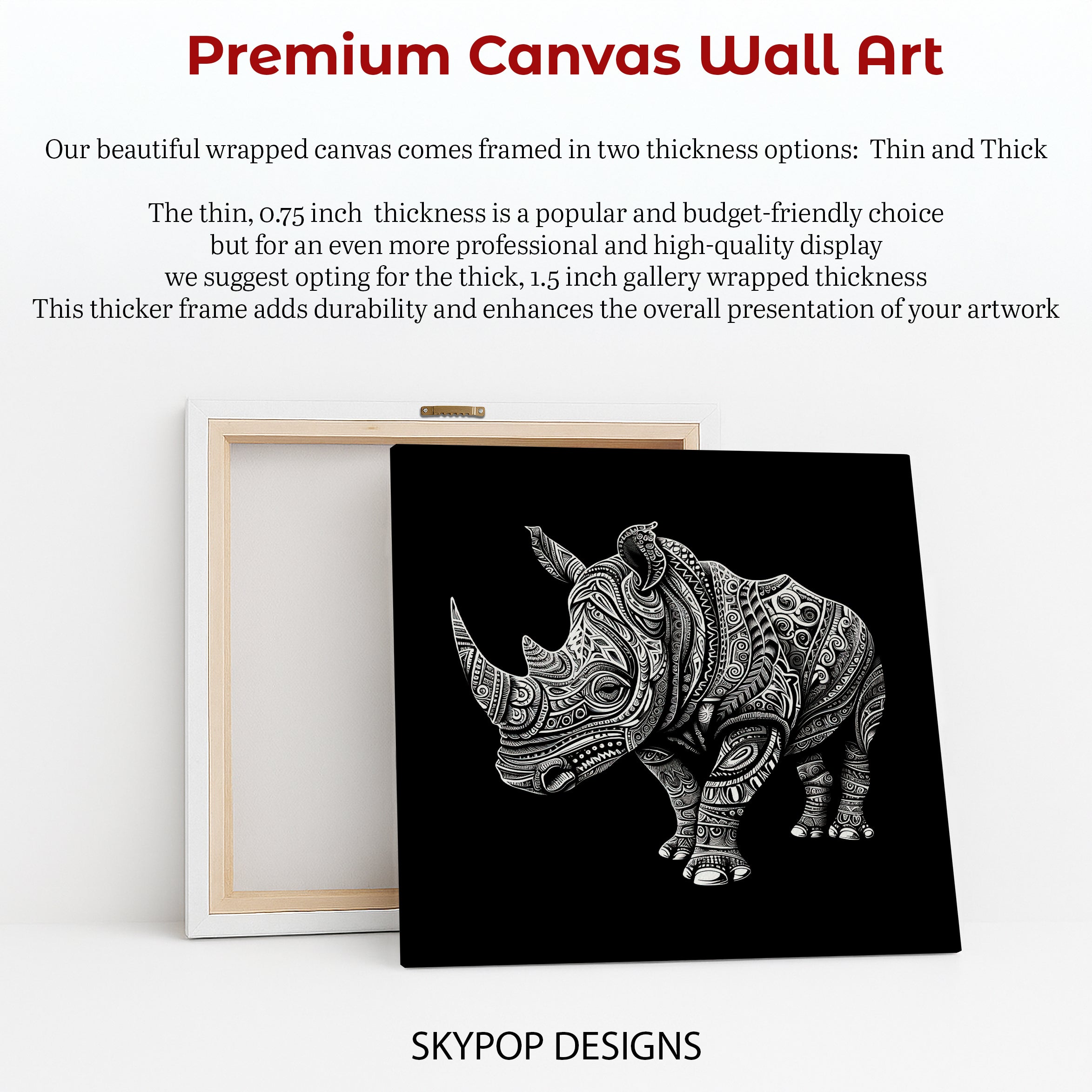 Transform your space with this striking black and white rhino canvas wall art, a captivating piece that blends tribal patterns with a powerful animal portrait. This unique poster or canvas wall art showcases a rhino adorned with intricate, eye-catching designs, creating a focal point that signifies strength and resilience. The monochromatic palette enhances the graphic quality of the artwork, making it a versatile choice for various decor styles, from minimalist to modern and rustic interiors. Elevate your living room or office with this abstract representation of nature's majesty. It's the perfect wall decor for those who appreciate distinctive animal art and bold graphic design. This canvas wall art adds a touch of sophistication and a conversation-starting element to any room. Ideal for a modern bedroom or a welcoming entryway, this piece truly stands out. The detailed linework and contrasting black and white tones create a visually dynamic effect, bringing a sense of powerful artistry to your home. Surprise someone special with this distinctive poster as a housewarming gift or for any occasion. Capture the wild spirit and intricate beauty with this stunning rhino canvas art. Elevate your home's aesthetic today and showcase your appreciation for unique wildlife art. This artwork is sure to inspire and impress, making a bold statement on any wall.