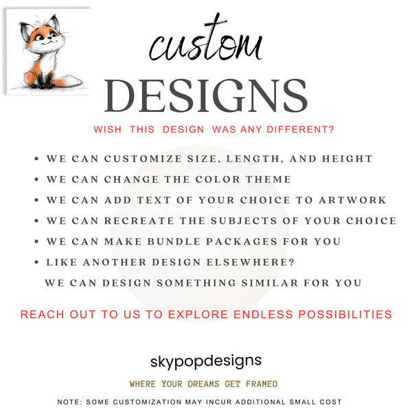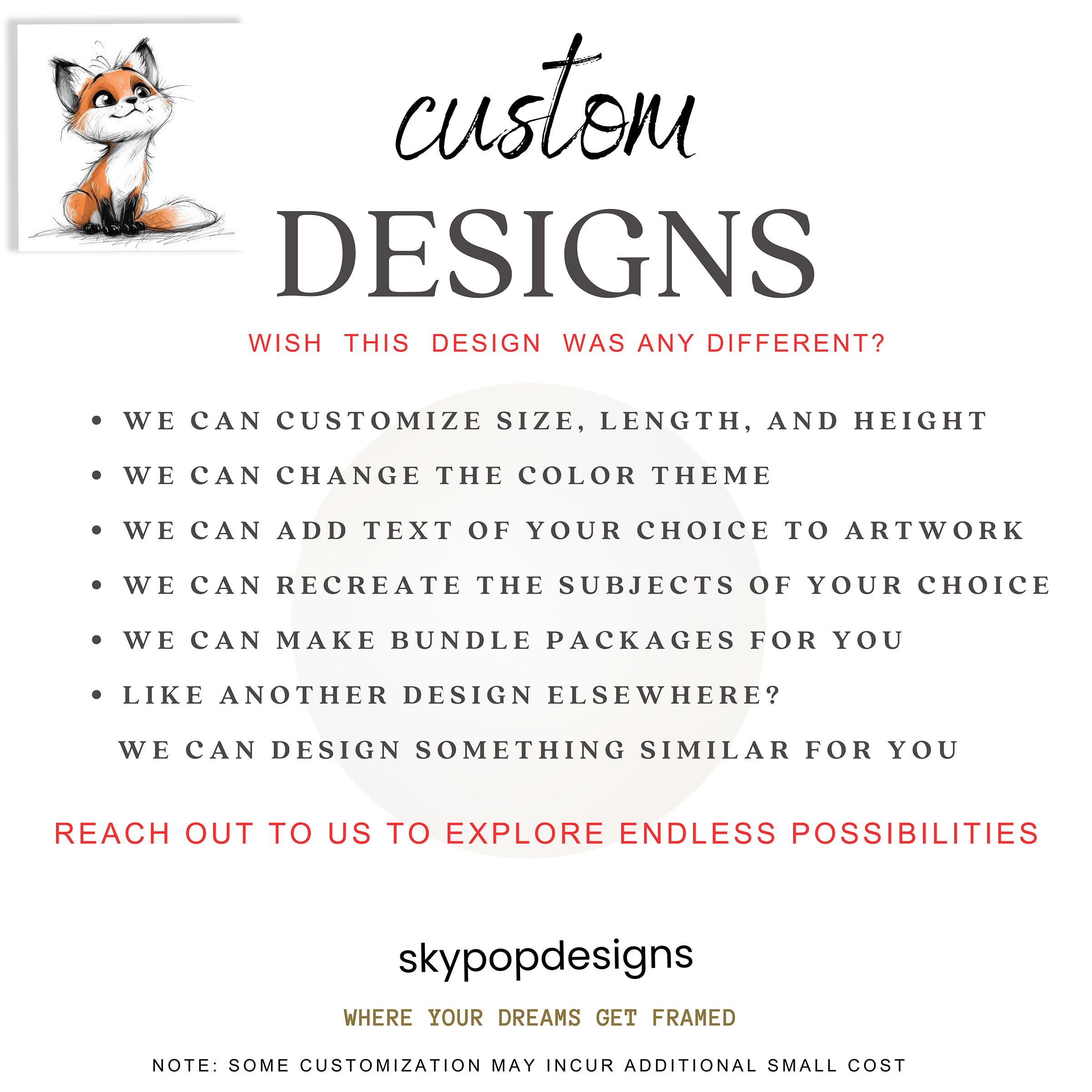 Looking for a custom design, or do you love a particular design but need it in a different size or orientation? Perhaps you've found a design elsewhere and wish for us to create something similar for you? Drop us a message! We're dedicated to meeting your needs and will work closely with you to ensure your vision comes to life.