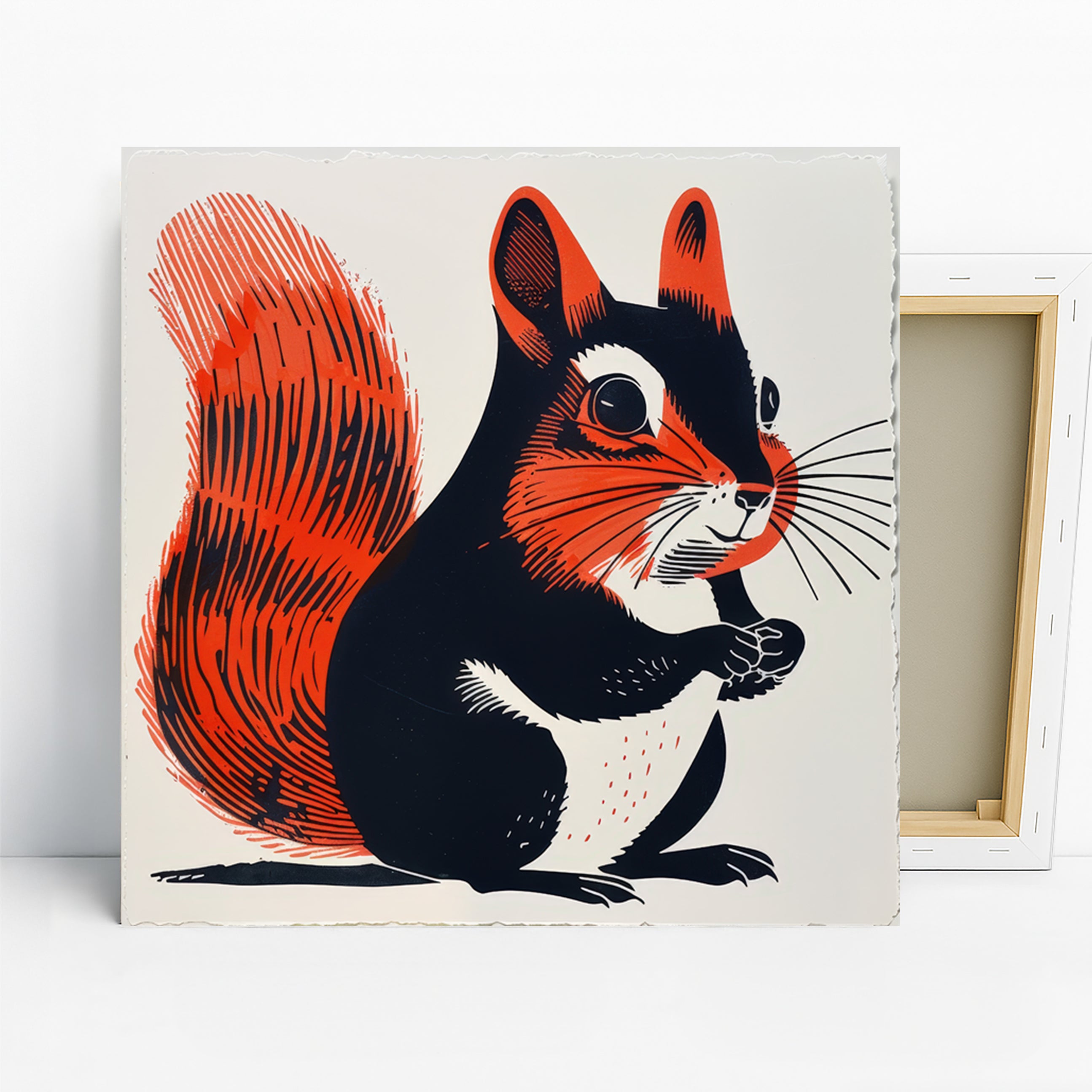 Squirrel Art, Canvas or Poster, Pop Art Minimalist Decor, Living Room Bedroom Office Wall Art, Black White Orange Multicolor