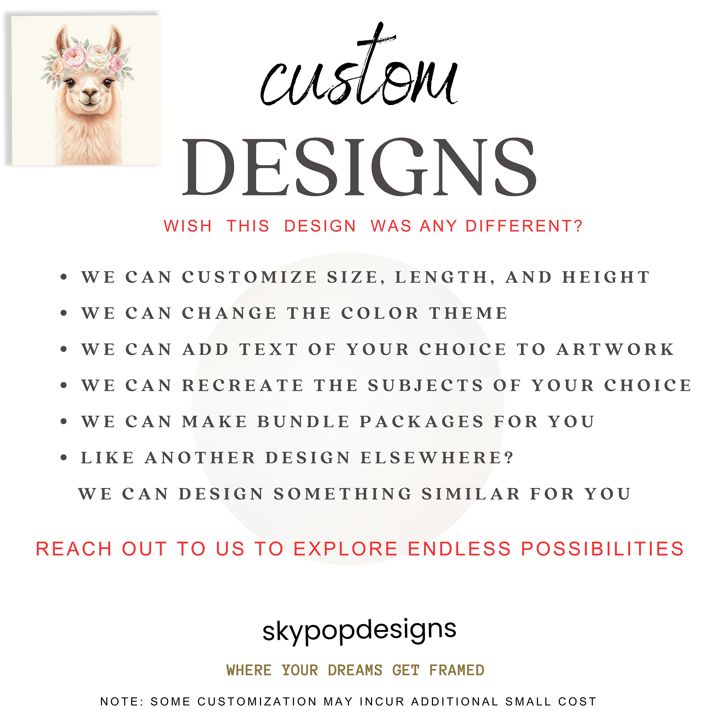 Looking for a custom design, or do you love a particular design but need it in a different size or orientation? Perhaps you've found a design elsewhere and wish for us to create something similar for you? Drop us a message! We're dedicated to meeting your needs and will work closely with you to ensure your vision comes to life.