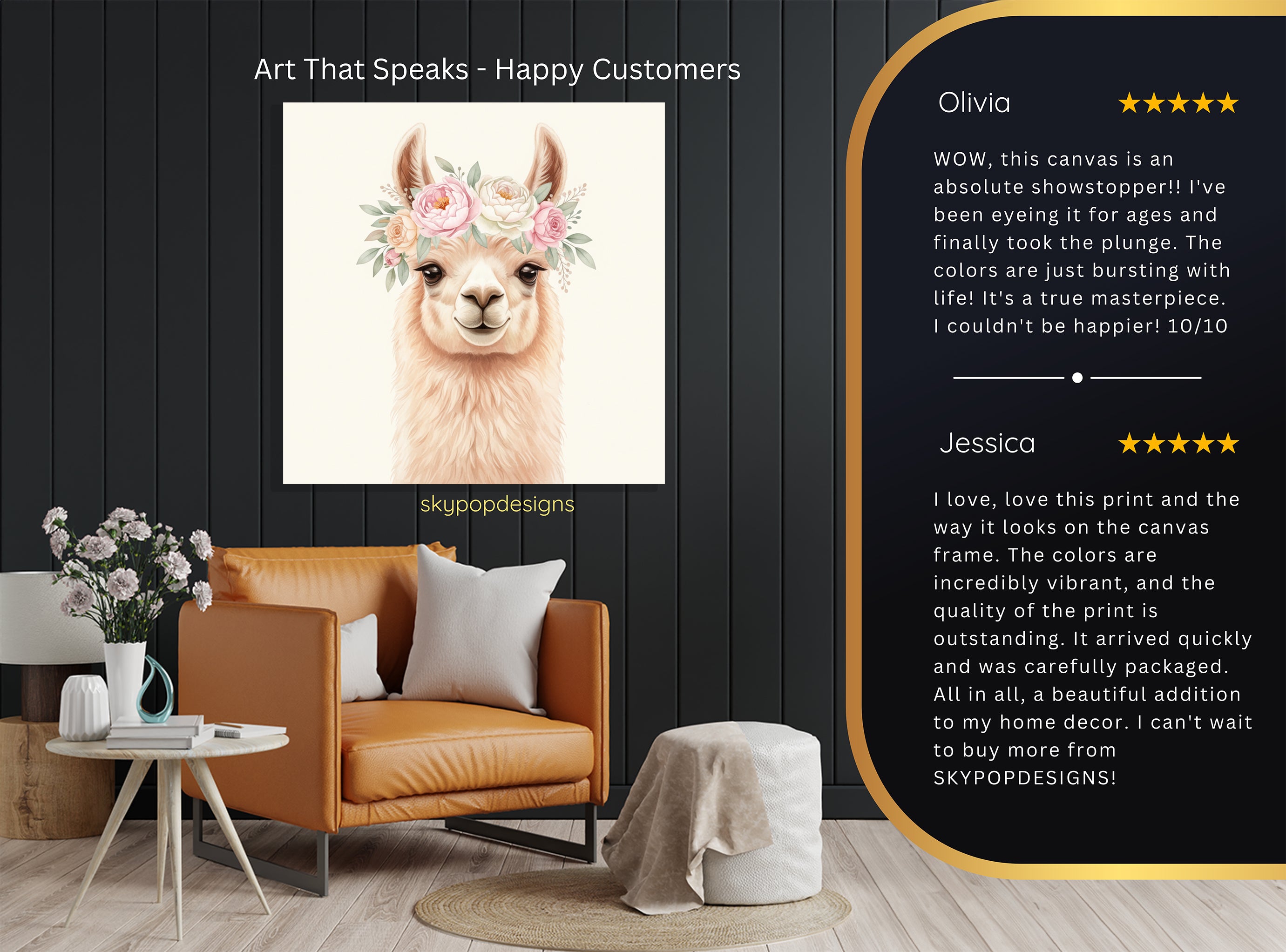 Keywords: Whimsical Art, Animal Art, Nature Art, Bohemian Decor, Farmhouse Decor, Shabby Chic Decor, Children's Room Decor, Nursery Decor, Bedroom Decor, Living Room Decor, Pink Wall Art, White Wall Art, Beige Wall Art, Green Wall Art, Llama Art, Floral Llama, Llama Portrait, Canvas Wall Art, Wall Art Poster, Animal Poster, Flower Crown Art, Cute Llama Art, Nursery Wall Art, Kids Room Art, Boho Wall Decor, Farmhouse Wall Decor, Shabby Chic Wall Decor, Birthday Gift, Housewarming Gift, Wall Decor