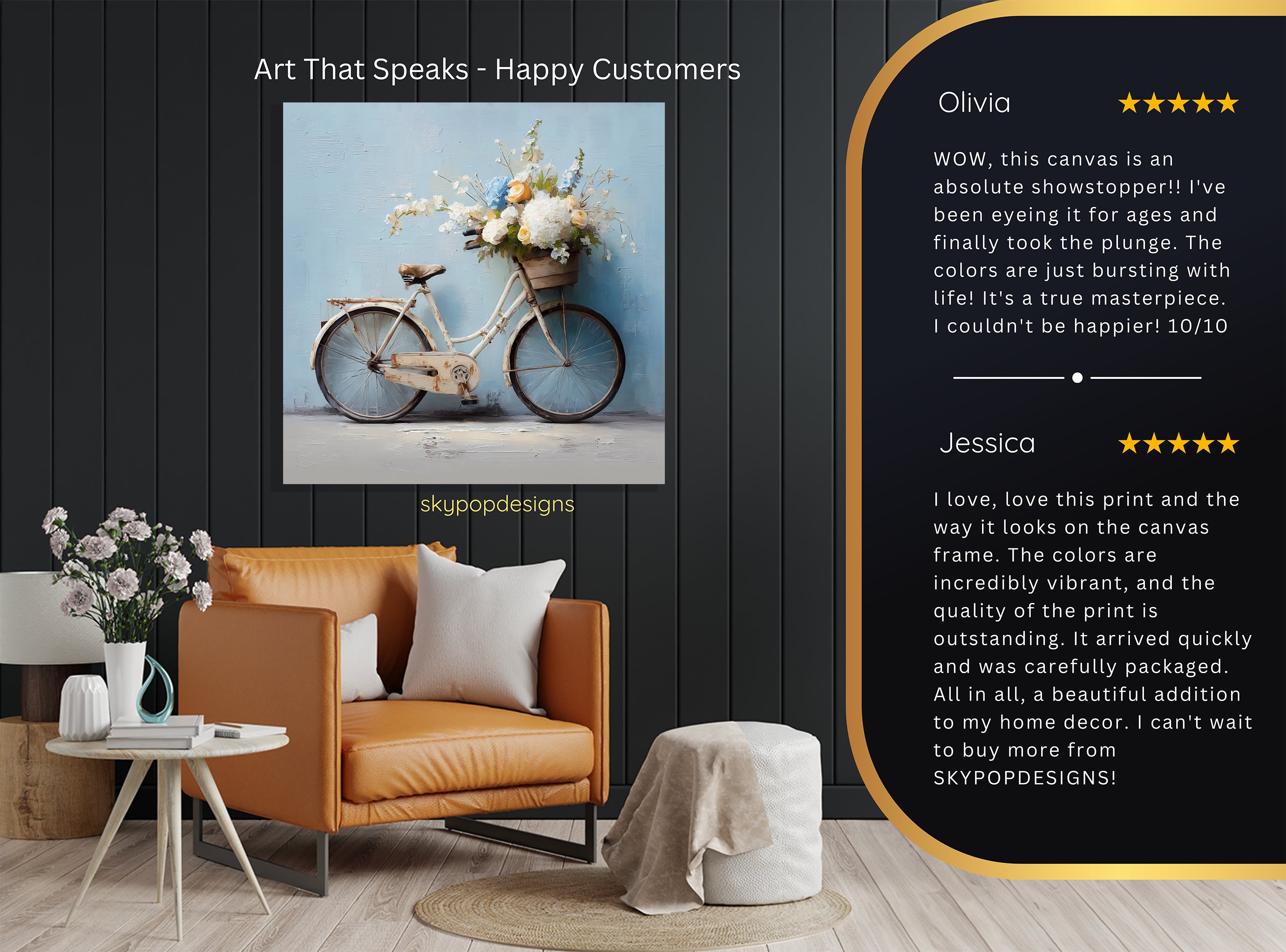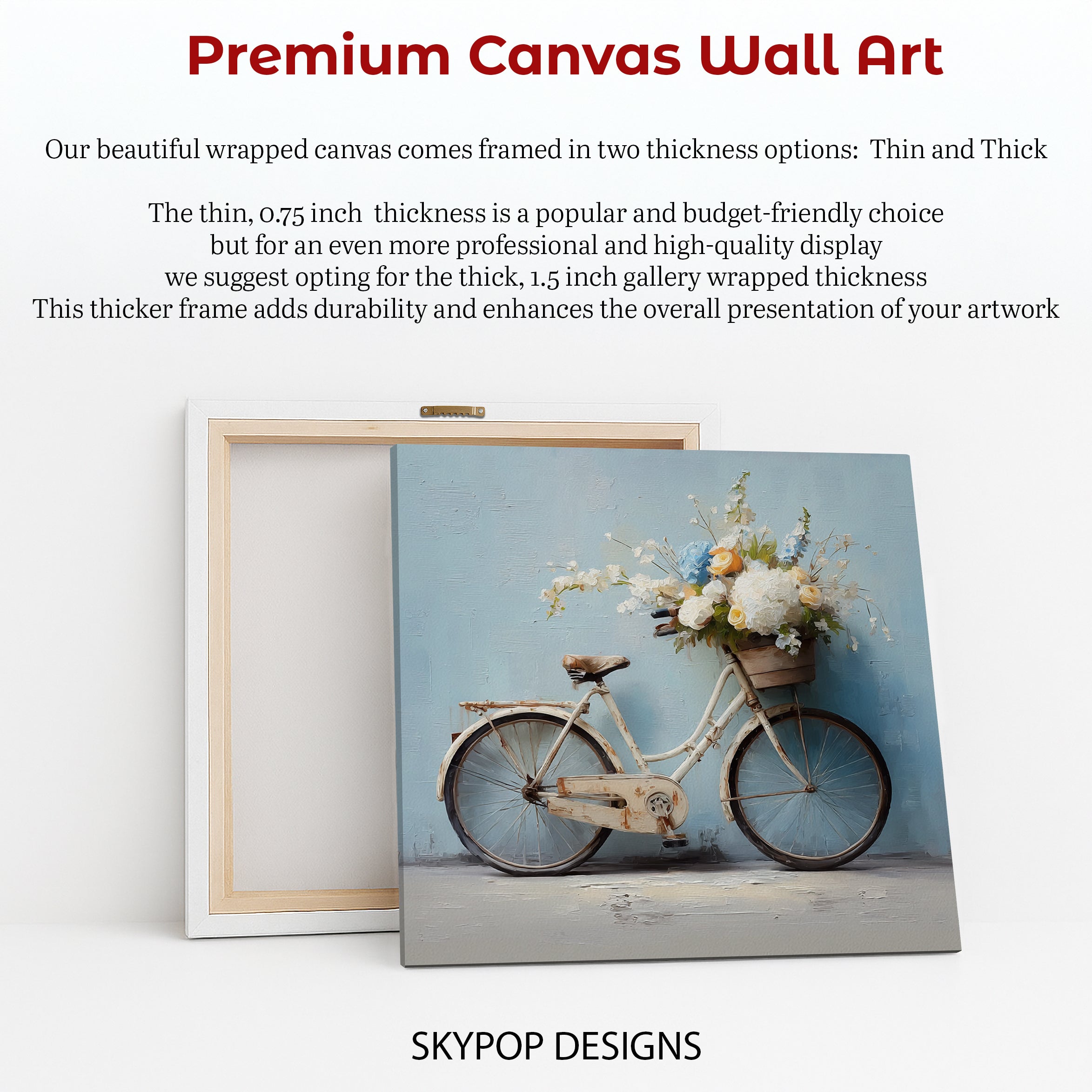 Keywords: Vintage Bicycle Art, Flower Basket Art, Impressionism Wall Art, Whimsical Decor, Shabby Chic Art, Farmhouse Decor, Bohemian Style, Living Room Art, Bedroom Wall Art, Sunroom Decor, Entryway Art, Blue and White Art, Multicolor Flowers, Canvas Wall Art, Poster Artwork, Nostalgic Charm, Timeless Beauty, Elegant Wall Decor, Vintage Home Decor, Housewarming Gift, Seasonal Decor, Interior Design, Wall Art Print, Floral Bicycle Art, Impressionistic Style, Cozy Home Art, Gentle Nostalgia, Serene Joy, Beautiful Moments, Unique Wall Accent