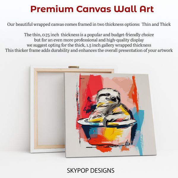 Transform your space with this vibrant sloth canvas wall art, a truly captivating piece that brings personality to any room. This striking wall art showcases a playful sloth rendered in a bold pop art style, set against a dynamic, abstract background with bold splashes of red, yellow, and blue. It’s the perfect poster to elevate your living room decor or add a cheerful touch to your bedroom. The contemporary design and energetic colors create a lively focal point, making it ideal for modern or minimalist decor styles. This unique piece of animal art is a fantastic conversation starter and a great way to express individuality. High-quality canvas printing ensures every detail is sharp and vivid, making this poster a lasting addition to your home. Consider this stunning artwork as an ideal gift for sloth lovers, birthdays, or housewarming celebrations. It’s a versatile piece that enhances any space, from a home office to a kid’s room, adding a splash of color and fun that inspires joy. Embrace this eye-catching sloth canvas wall art today to instantly revitalize your home's aesthetic and infuse it with positive vibes.
