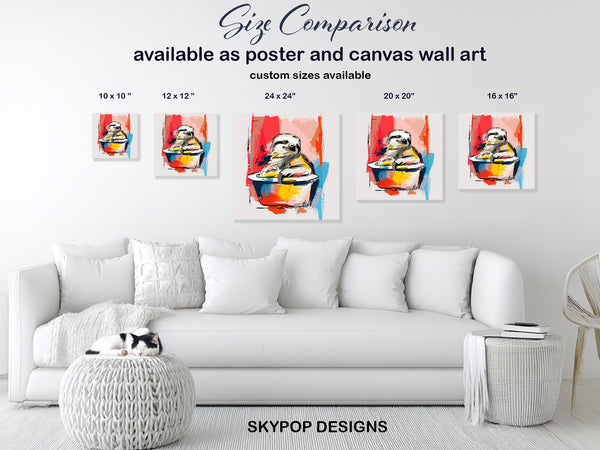 Sloth Art, Canvas or Poster, Pop Graffiti Decor, Living Room Bedroom Office Kids Room Wall Art, Multicolor Red Yellow Blue, Animal Wall Art