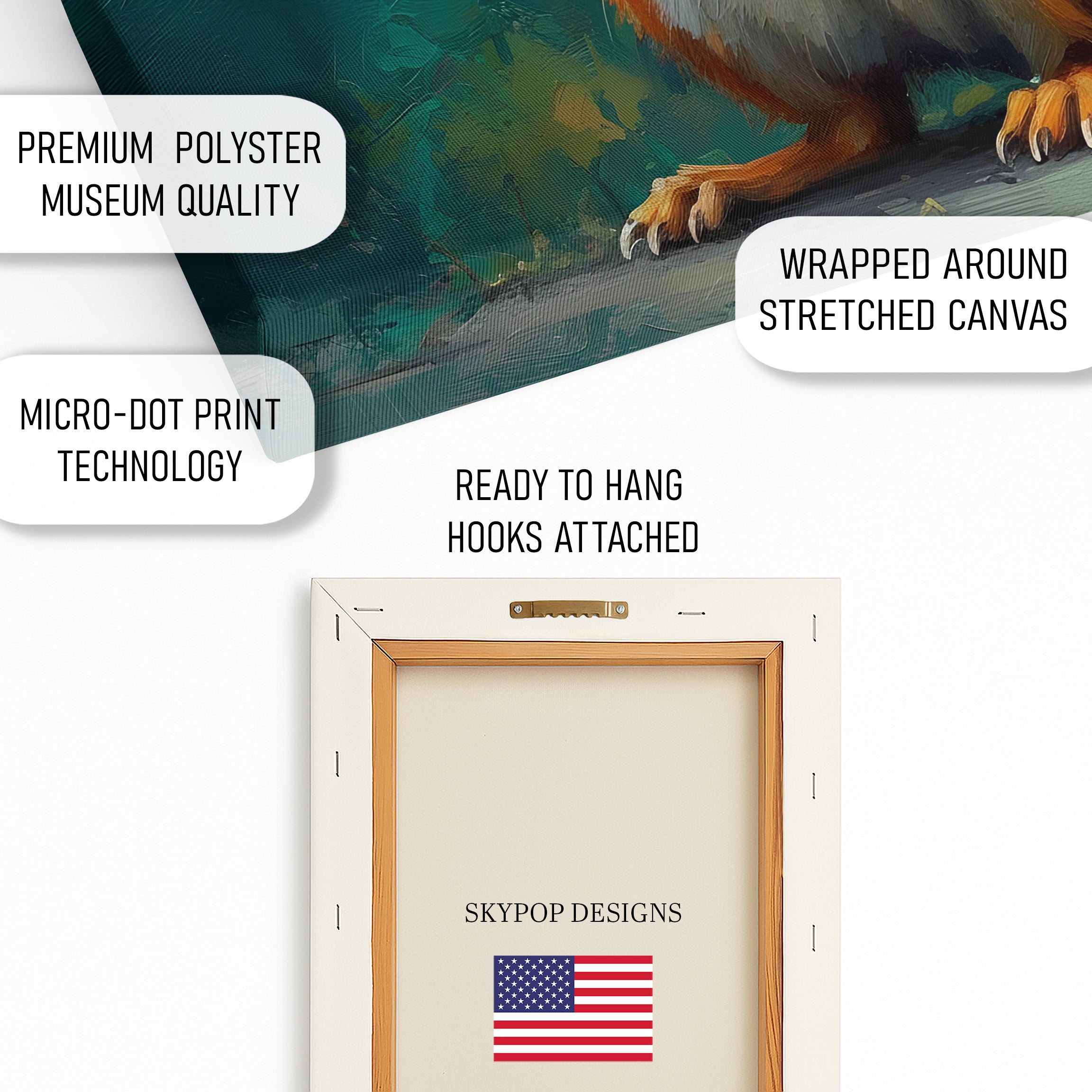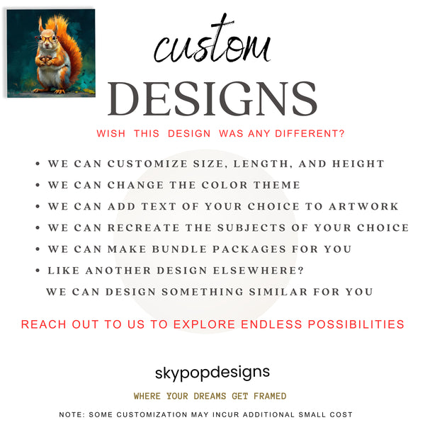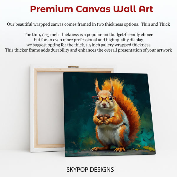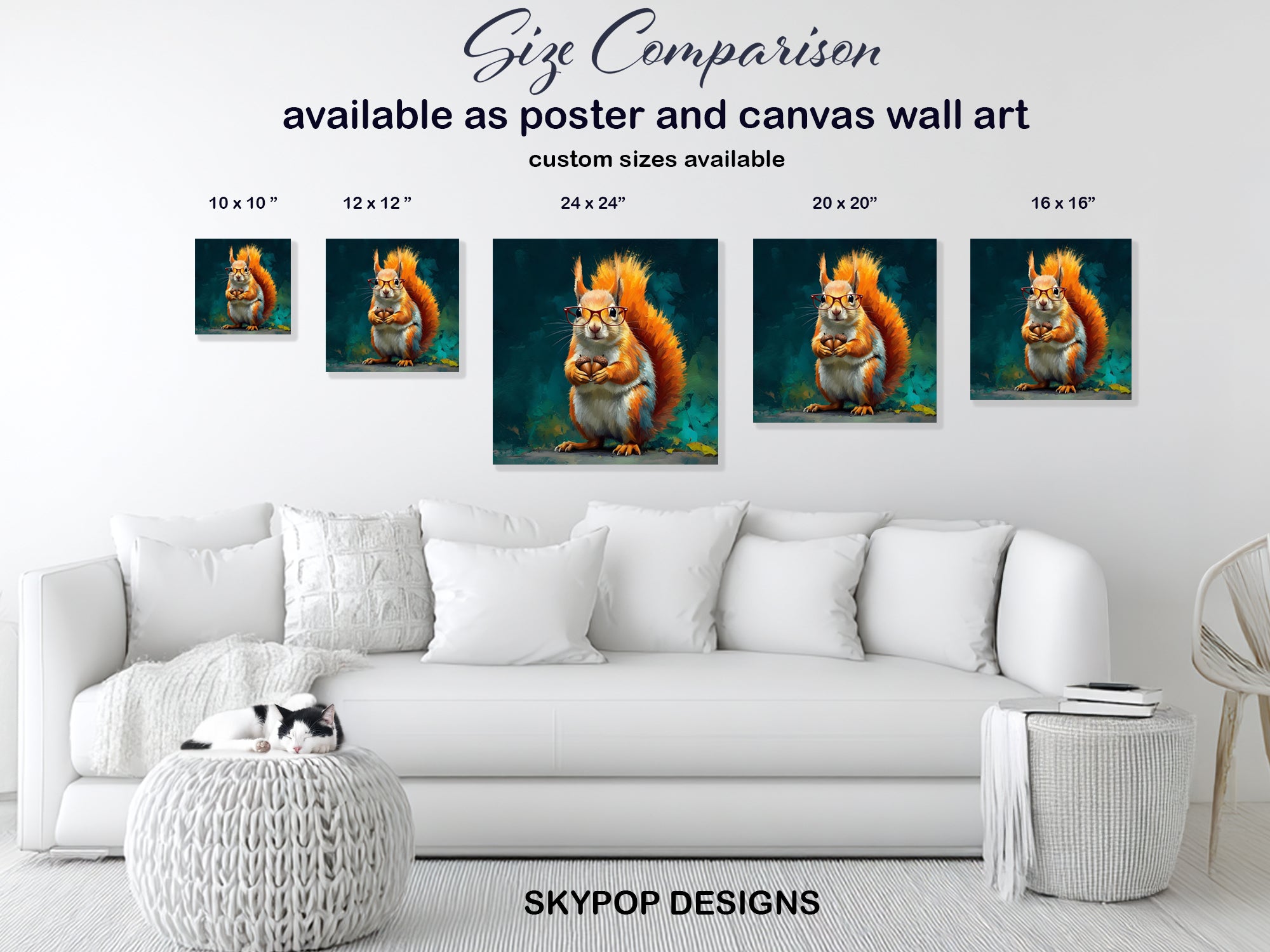 Keywords: Squirrel Canvas Art, Animal Wall Art, Whimsical Art, Pop Art Print, Modern Decor, Bohemian Decor, Contemporary Art, Living Room Art, Kids Room Decor, Office Wall Art, Entryway Decor, Orange Art, Brown Art, Green Art, Multicolor Art, Squirrel Poster, Acorn Art, Nerdy Squirrel, Animal Lover Gift, Quirky Art, Characterful Art, Textured Art, Canvas Print, Wall Decor, Home Decor, Statement Piece, Conversation Starter, Playful Intellectual, Cozy Preparedness, Vibrant Wall Art