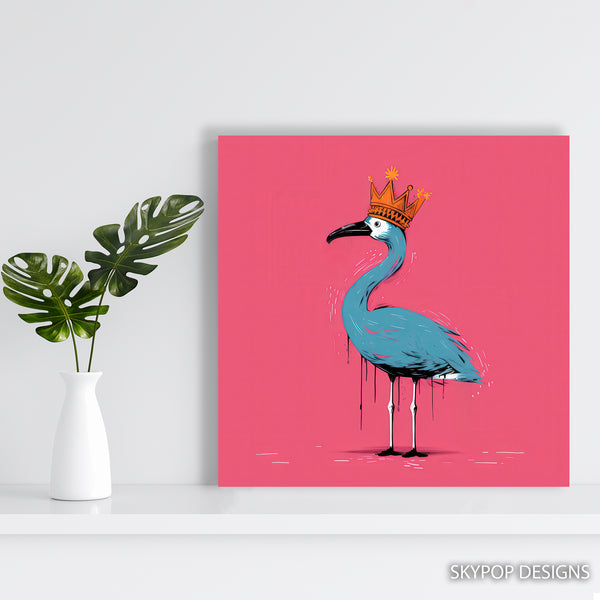 Transform your space with this striking flamingo canvas wall art, a vibrant centerpiece that captures attention. This unique poster features a regal flamingo adorned with an ornate golden crown, set against a bold pink backdrop, instantly elevating your home decor. The contemporary art style, with its graphic lines and playful drips, brings a modern, urban edge to any room, making it perfect for living rooms, bedrooms, or even a stylish office. As a piece of pop art, this canvas wall art showcases a bold color palette and a captivating subject, creating a fun and impactful statement. The striking combination of electric pink and the majestic flamingo in gold offers a mood-boosting visual experience, embodying confidence and flair. This versatile artwork is ideal for bohemian or contemporary decor schemes, adding a touch of personality and artistic appeal. It serves as a fantastic gift for birthdays, housewarmings, or any occasion for someone who loves unique animal art or vibrant wall decor. The high-quality print ensures the rich colors and crisp details of this poster pop, creating a captivating focal point. Add a touch of playful royalty to your walls with this eye-catching flamingo canvas art that is sure to spark conversation. Elevate your wall decor with this dynamic piece that celebrates individuality and bold design choices. Make a statement and infuse your space with color and character today.