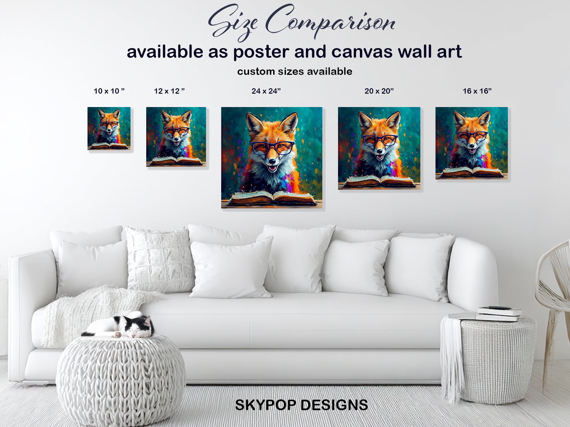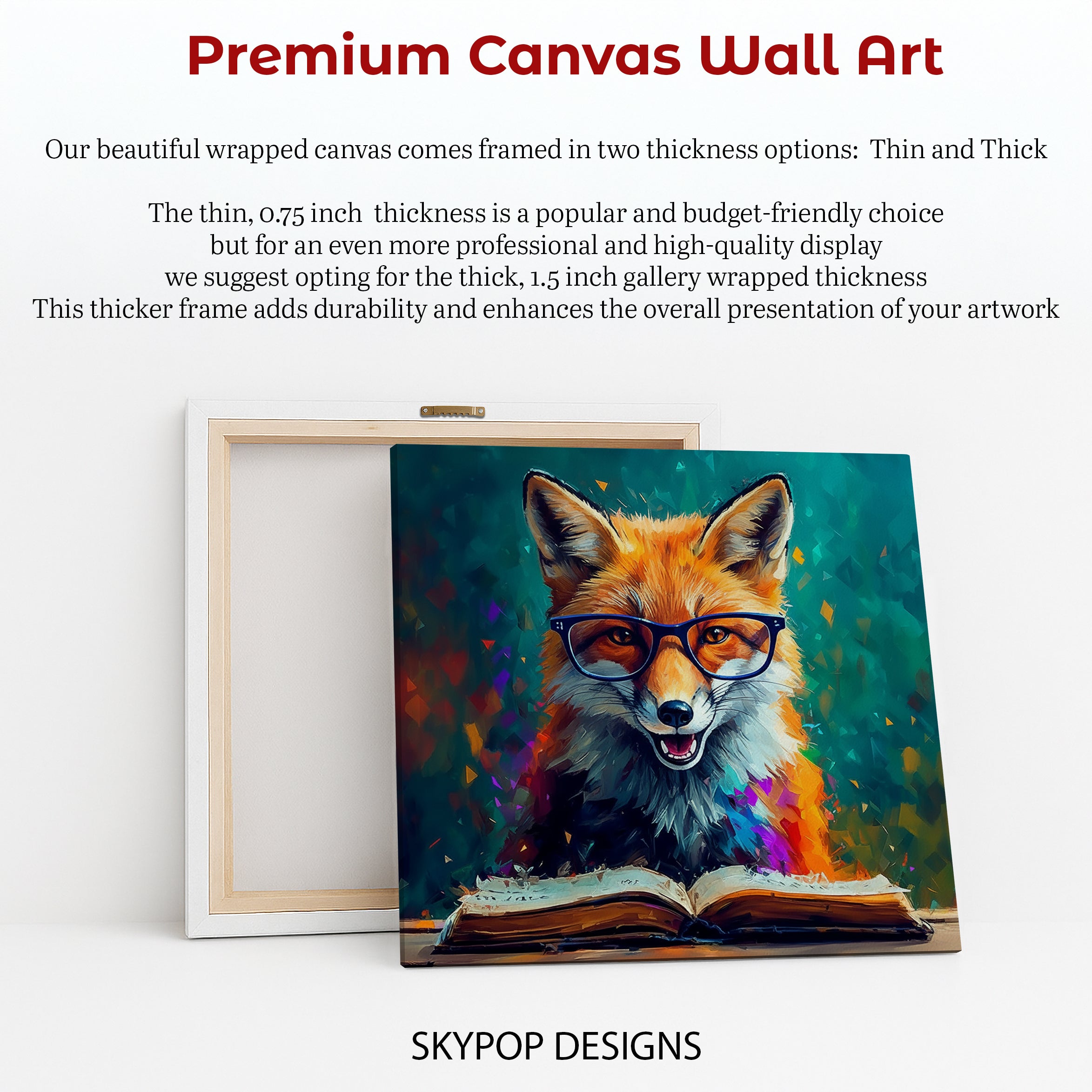 Keywords: Fox Wall Art, Pop Art Canvas, Street Art Print, Whimsical Fox, Modern Decor, Bohemian Bedroom, Contemporary Living Room, Multicolor Art, Teal Wall Art, Orange Art, Black Accents, Fox Reading Art, Hipster Fox, Animal Canvas, Book Lover Gift, Student Gift, Office Decor, Library Art, Wall Poster, Unique Artwork, Statement Piece, Canvas Print, Home Decor, Artistic Flair, Vibrant Colors, Quirky Art, Creative Gift, Intellectual Decor, Room Accent, Eye-Catching Art