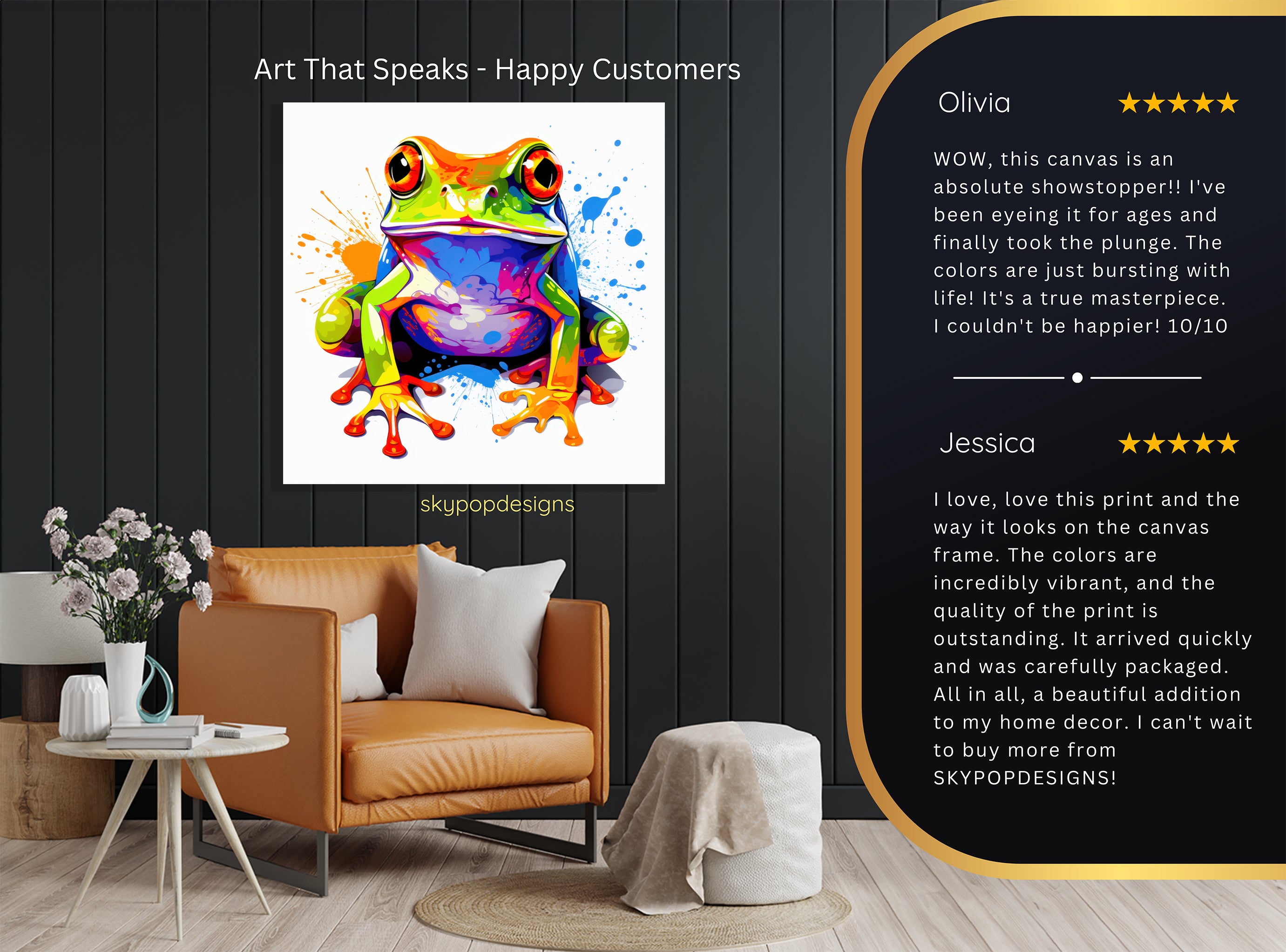 At SKYPOPDESIGNS, we specialize in high-quality canvas and poster prints designed to bring sophistication and style to your space. Please note that our designs are not created with 3D textures or as original oil, acrylic, or watercolor paintings; they are instead HD reproductions of original artwork. This approach allows us to offer these visually stunning pieces at competitive prices, ensuring you receive top-tier, maintenance-free art that's easy to enjoy.