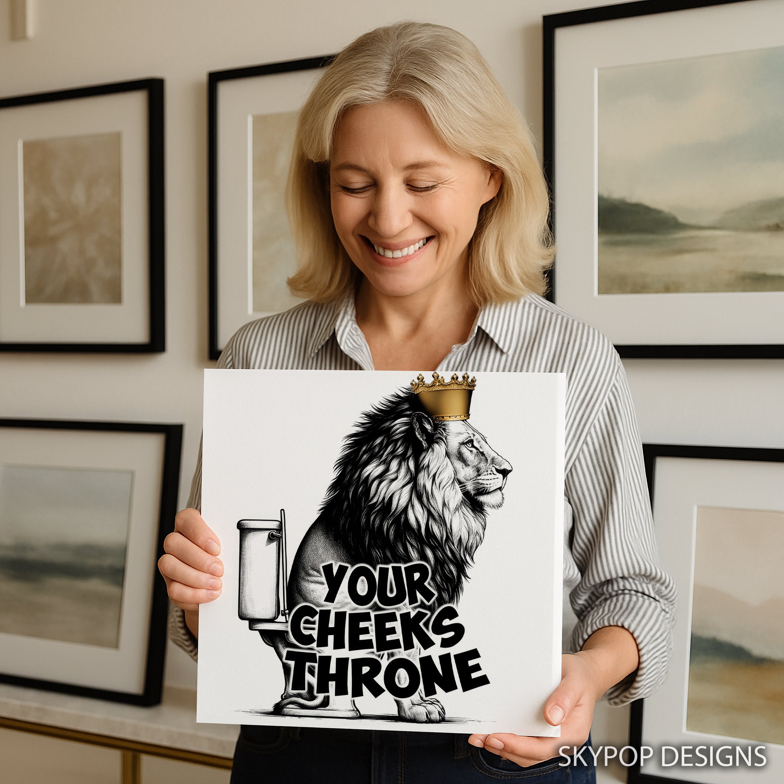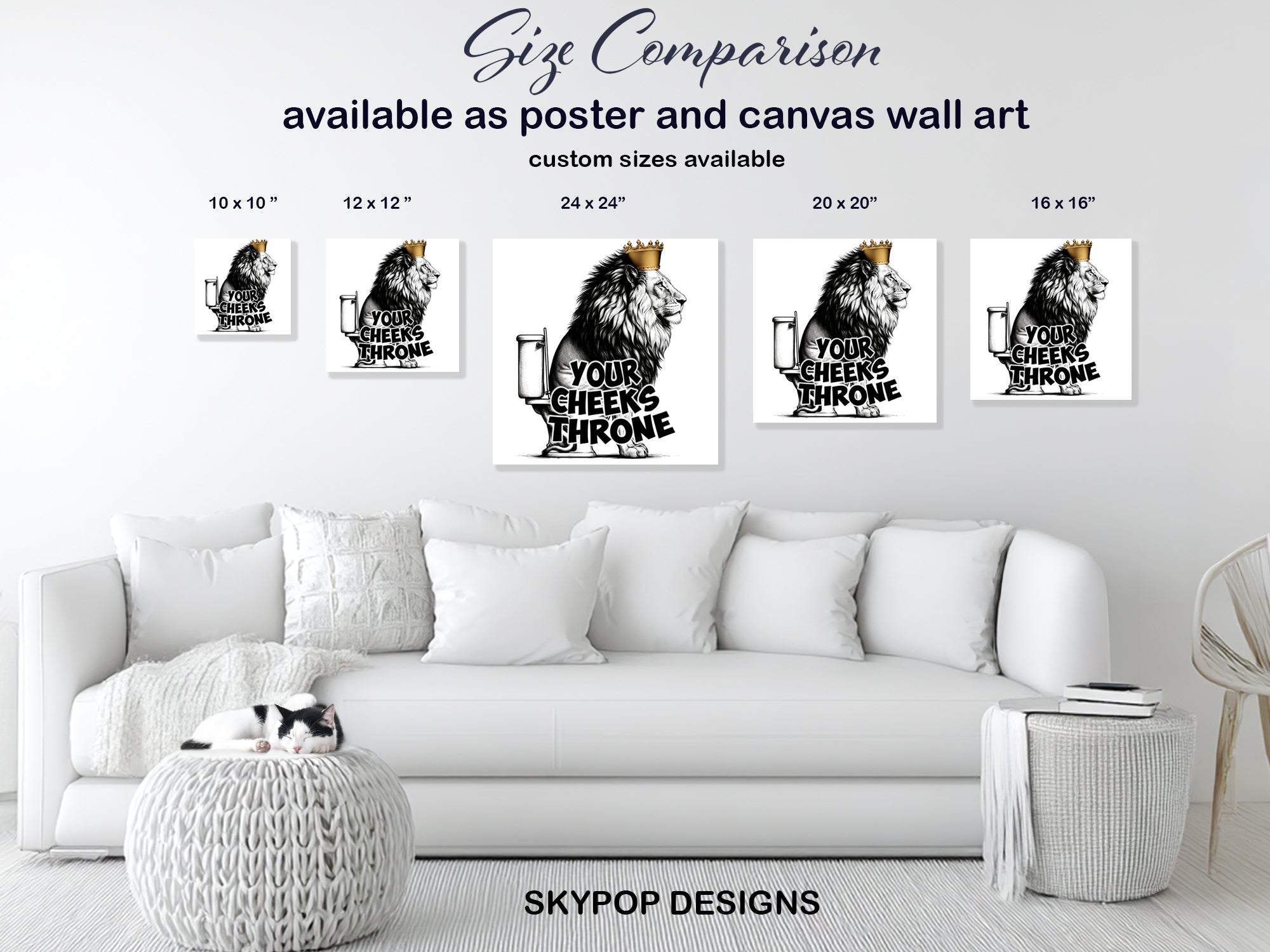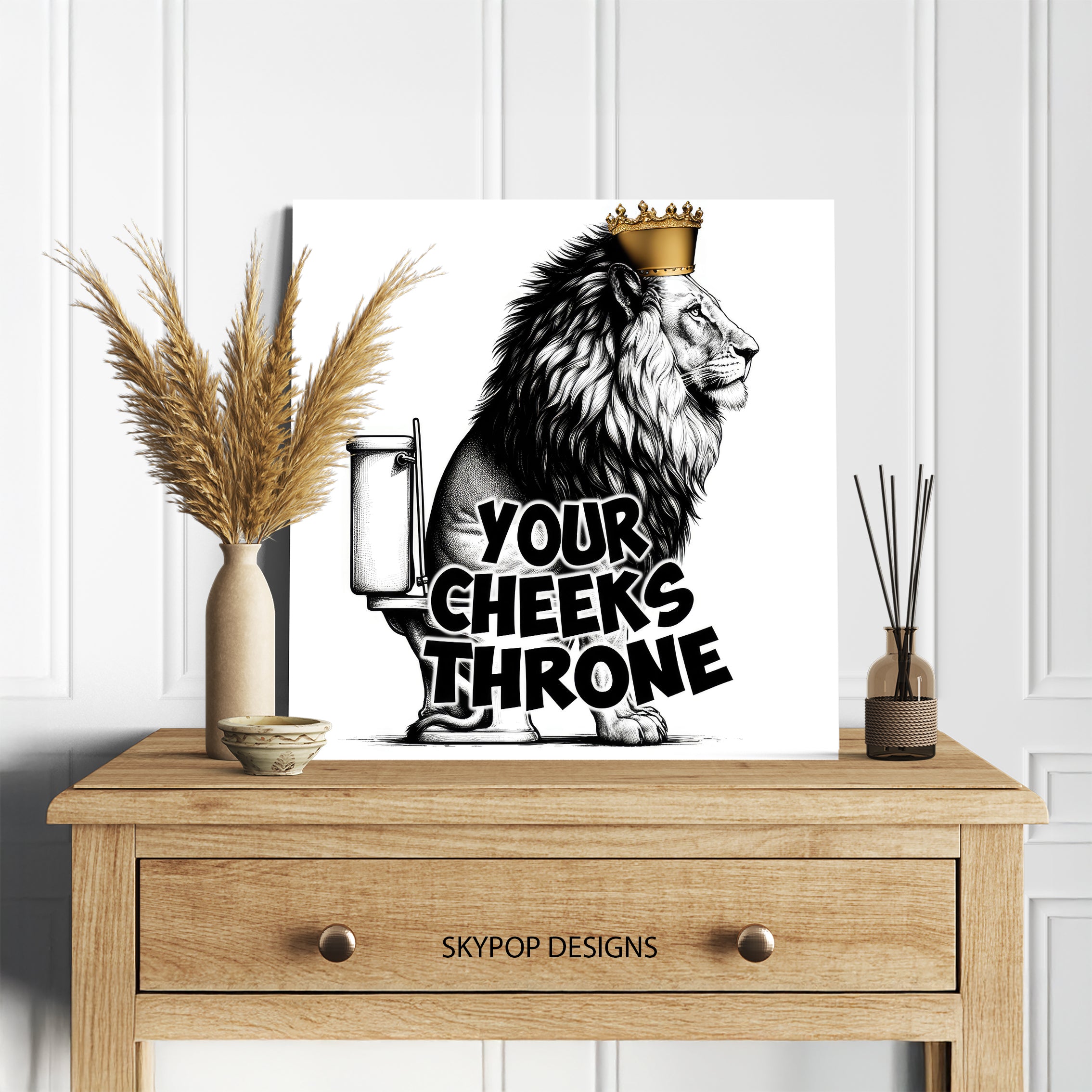Keywords: Lion Wall Art, Pop Art Canvas, Street Art Poster, Graffiti Art Print, King of the Throne, Majestic Lion, Golden Crown Art, Black and White Art, Multicolor Art, Gold Accent Art, Contemporary Decor, Modern Home Decor, Minimalist Wall Art, Living Room Art, Game Room Decor, Office Wall Art, Bathroom Art, Animal Art, Bold Statement Piece, Humorous Art, Urban Chic Decor, Graphic Design Art, Unique Wall Art, High-Quality Print, Mansion Decor, Luxury Art, Confidence Boosting Art, Gift for Him, Art Collector Gift, Home Decor Accent