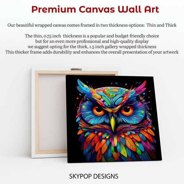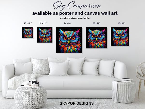 Keywords: Vibrant Owl Art, Owl Canvas Wall Art, Abstract Owl Art, Multicolor Wall Art, Blue Orange Purple Art, Living Room Art, Bedroom Decor, Office Wall Art, Entryway Decor, Modern Art Poster, Bohemian Decor, Contemporary Art, Street Art Style, Animal Wall Art, Wildlife Art Print, Unique Owl Poster, Colorful Home Decor, Statement Wall Art, Art Enthusiast Gift, Nature Lover Gift, Interior Design Art, Abstract Canvas Print, Bold Brushstrokes, Fine Art Poster, High-Quality Print, Artistic Owl Representation, Eclectic Wall Art, Inspirational Home Decor, Home Decor Statement Piece, Contemporary Owl Design