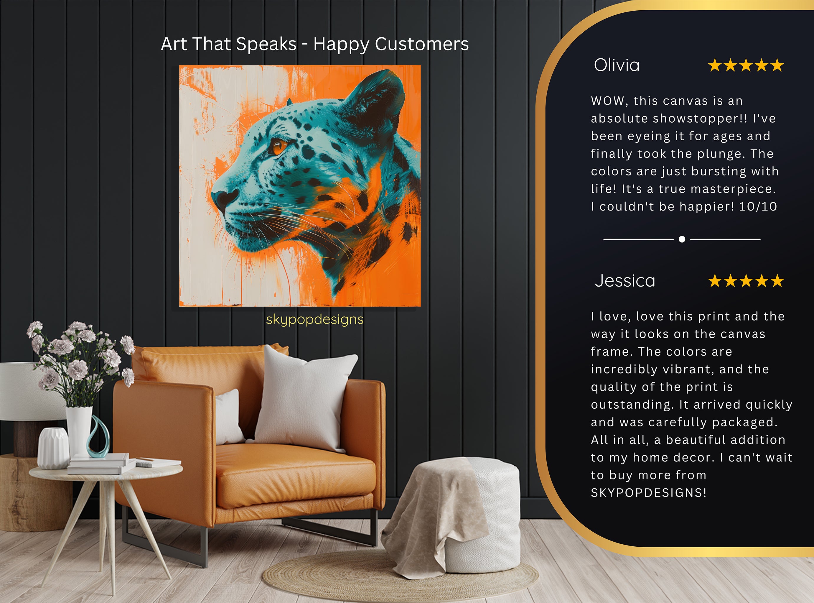 At SKYPOPDESIGNS, we specialize in high-quality canvas and poster prints designed to bring sophistication and style to your space. Please note that our designs are not created with 3D textures or as original oil, acrylic, or watercolor paintings; they are instead HD reproductions of original artwork. This approach allows us to offer these visually stunning pieces at competitive prices, ensuring you receive top-tier, maintenance-free art that's easy to enjoy.
