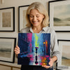 Rainy Evening Cityscape Art, Canvas or Poster, Contemporary Bohemian Decor, Living Room Bedroom Office Wall Art, Blue Pink Yellow Multicolor