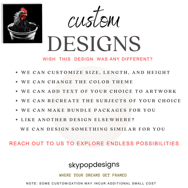 Looking for a custom design, or do you love a particular design but need it in a different size or orientation? Perhaps you've found a design elsewhere and wish for us to create something similar for you? Drop us a message! We're dedicated to meeting your needs and will work closely with you to ensure your vision comes to life.