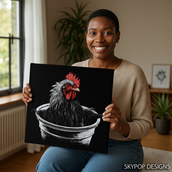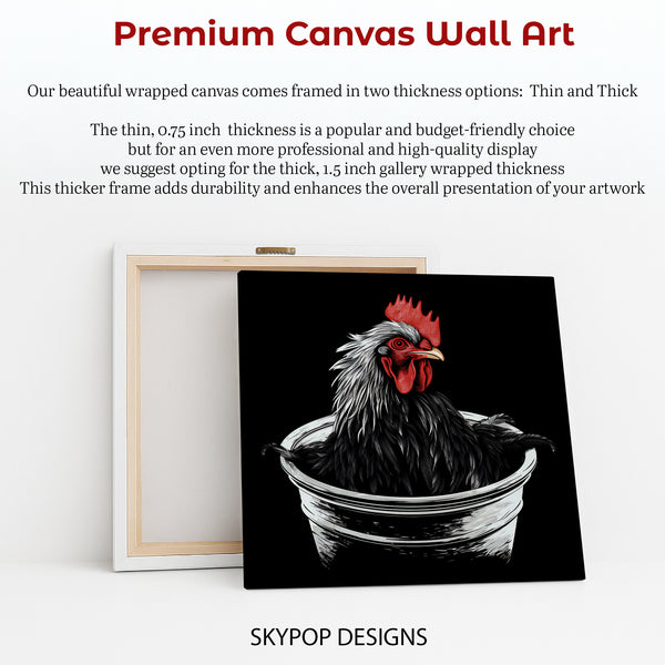 Transform your walls with this striking rooster canvas wall art that brings a bold pop of color and personality to any room. This captivating poster features a vibrant rooster with striking red comb and detailed black and white plumage, set against a dramatic black background for maximum impact. The contemporary graphic style, reminiscent of street art, makes this piece a standout addition to modern and minimalist decor styles. It's perfect for elevating your living room, adding character to a bedroom, or injecting personality into your kitchen or office space. This canvas wall art is ideal for those who appreciate unique animal art and bold design choices. The contrast between the vivid red and the stark black and white creates a dynamic visual that's both eye-catching and artistic. Whether you're looking for a statement piece to anchor your decor or a unique gift for art lovers, this versatile artwork delivers. It's a fantastic way to showcase your appreciation for nature's beauty with a vibrant, modern twist. Available in various sizes, this canvas print ensures a perfect fit for your space, enhancing its overall aesthetic. Elevate your home's atmosphere with this conversation-starting rooster art today and add a touch of urban chic.