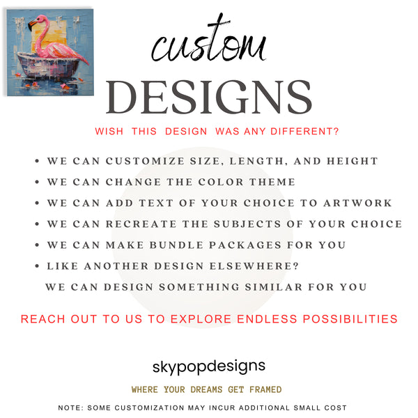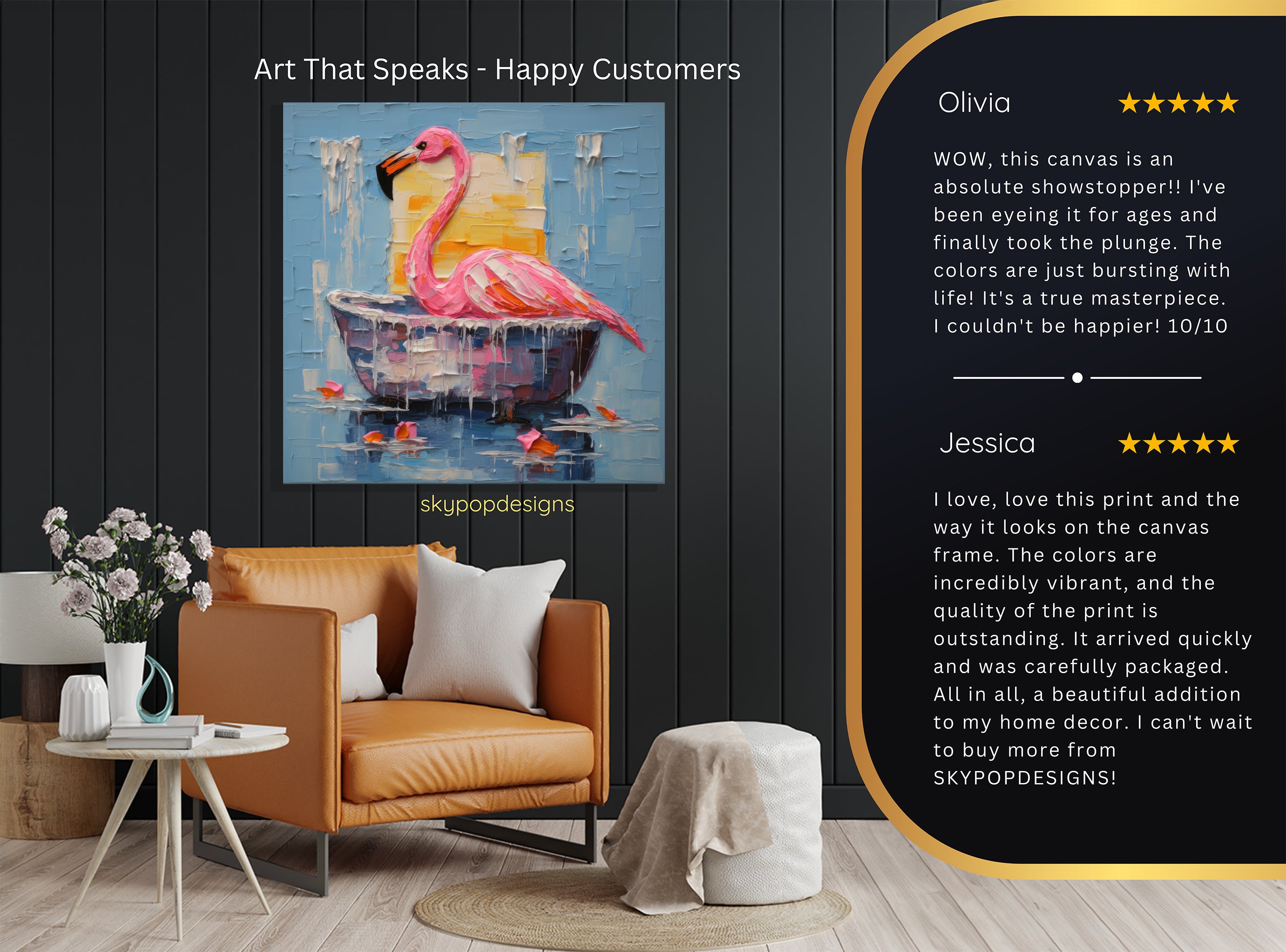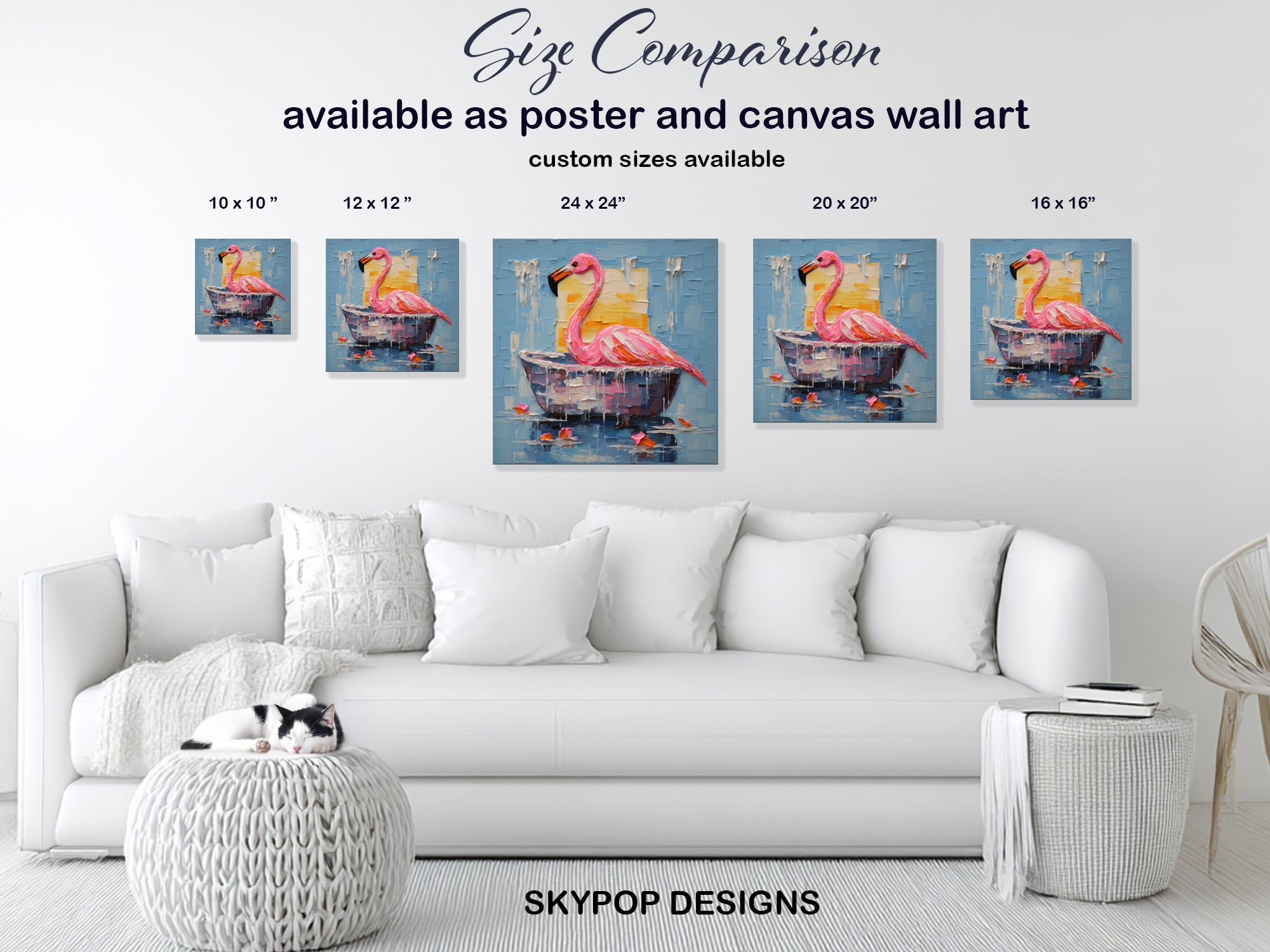 Keywords: Pop Art Flamingo, Abstract Art Print, Whimsical Wall Art, Contemporary Decor, Bohemian Style, Modern Art, Pink Flamingo, Blue Art, Yellow Accents, Multicolor Artwork, Flamingo Canvas, Living Room Art, Bathroom Decor, Bedroom Wall Art, Sunroom Accent, Spa Day Theme, Impasto Style, Textured Brushwork, Vibrant Colors, Playful Art, Joyful Decor, Tranquil Atmosphere, Home Atmosphere, Statement Piece, Housewarming Gift, Birthday Present, Holiday Gift, Unique Poster, Animal Art, Flamingo Print