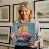 Flamingo Spa Day Art, Canvas or Poster, Pop Art Bohemian Decor, Living Room Bathroom Bedroom Wall Art, Pink Blue Yellow Multicolor