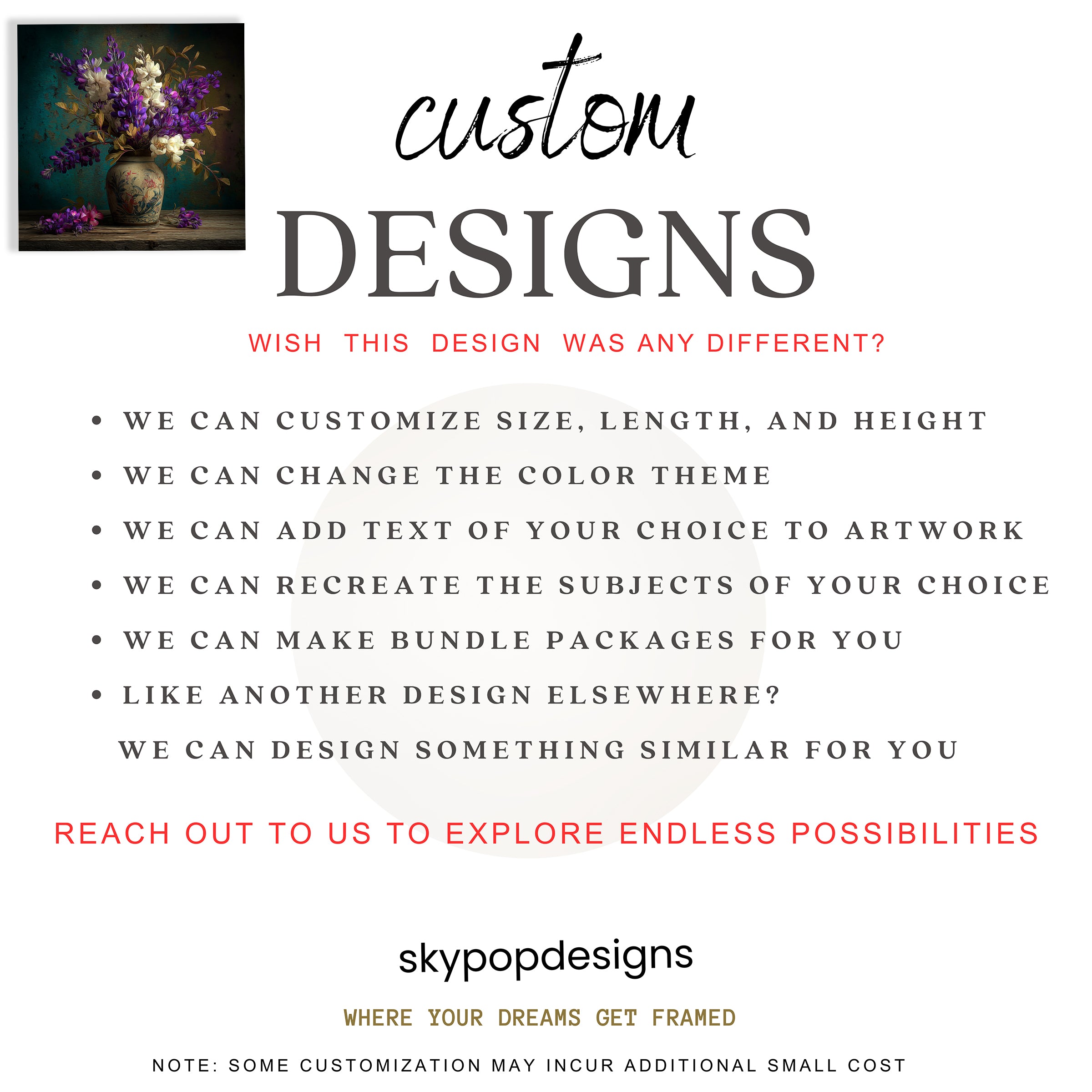 At SKYPOPDESIGNS, we specialize in high-quality canvas and poster prints designed to bring sophistication and style to your space. Please note that our designs are not created with 3D textures or as original oil, acrylic, or watercolor paintings; they are instead HD reproductions of original artwork. This approach allows us to offer these visually stunning pieces at competitive prices, ensuring you receive top-tier, maintenance-free art that's easy to enjoy.