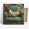 Transform your home with this striking rooster canvas wall art, featuring a majestic rooster perched regally on a vintage teal chair. This captivating piece of animal art is rendered in rich, earthy tones of teal, brown, and gold, evoking a sense of timeless elegance and rustic charm. The intricate details of the rooster's plumage and the chair's ornate design make this canvas wall art a true statement piece. Perfect for adding a touch of vintage sophistication to your living room, bedroom, or dining room, this artwork also makes a thoughtful housewarming gift or a unique present for any occasion. The vibrant colors and classic composition of this wall art will elevate your interior decor and create a warm, inviting atmosphere. This poster or canvas wall art blends traditional style with a touch of whimsy, appealing to those who appreciate unique and eye-catching art for their home. The high-quality printing ensures that the rich textures and fine details of this artwork are beautifully preserved, making it a lasting addition to your wall decor. Showcase your love for nature and vintage aesthetics with this stunning rooster canvas print that embodies classic beauty and character. Elevate your space with this unique piece of art that celebrates the charm of country living and traditional interiors. Add this beautiful rooster wall art to your collection and let it bring a touch of natural beauty and classic style to your home.
