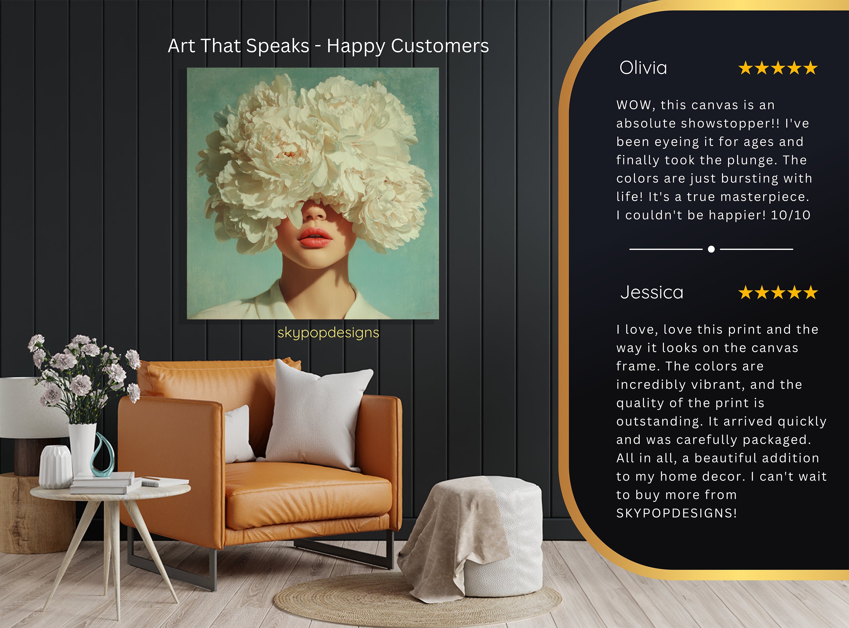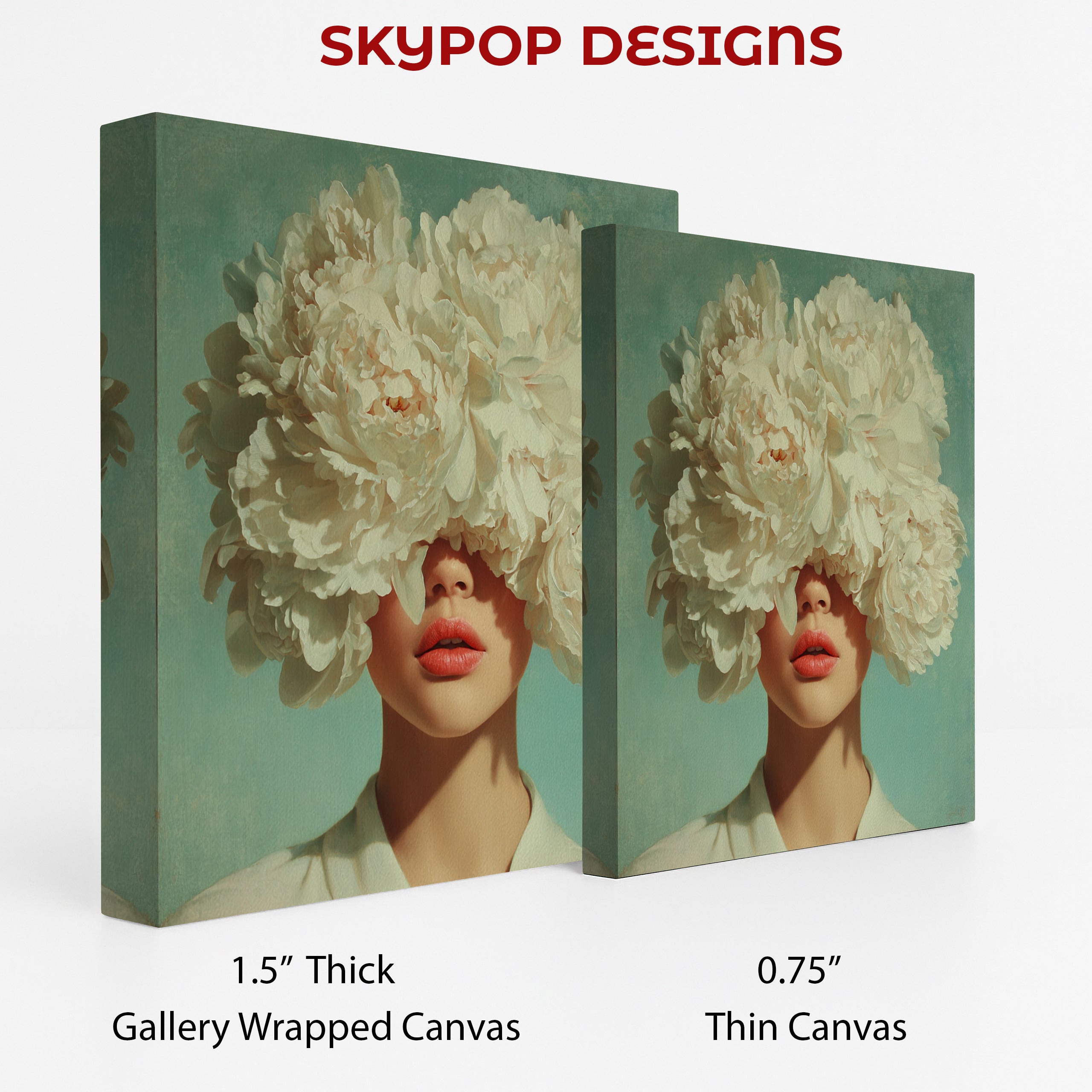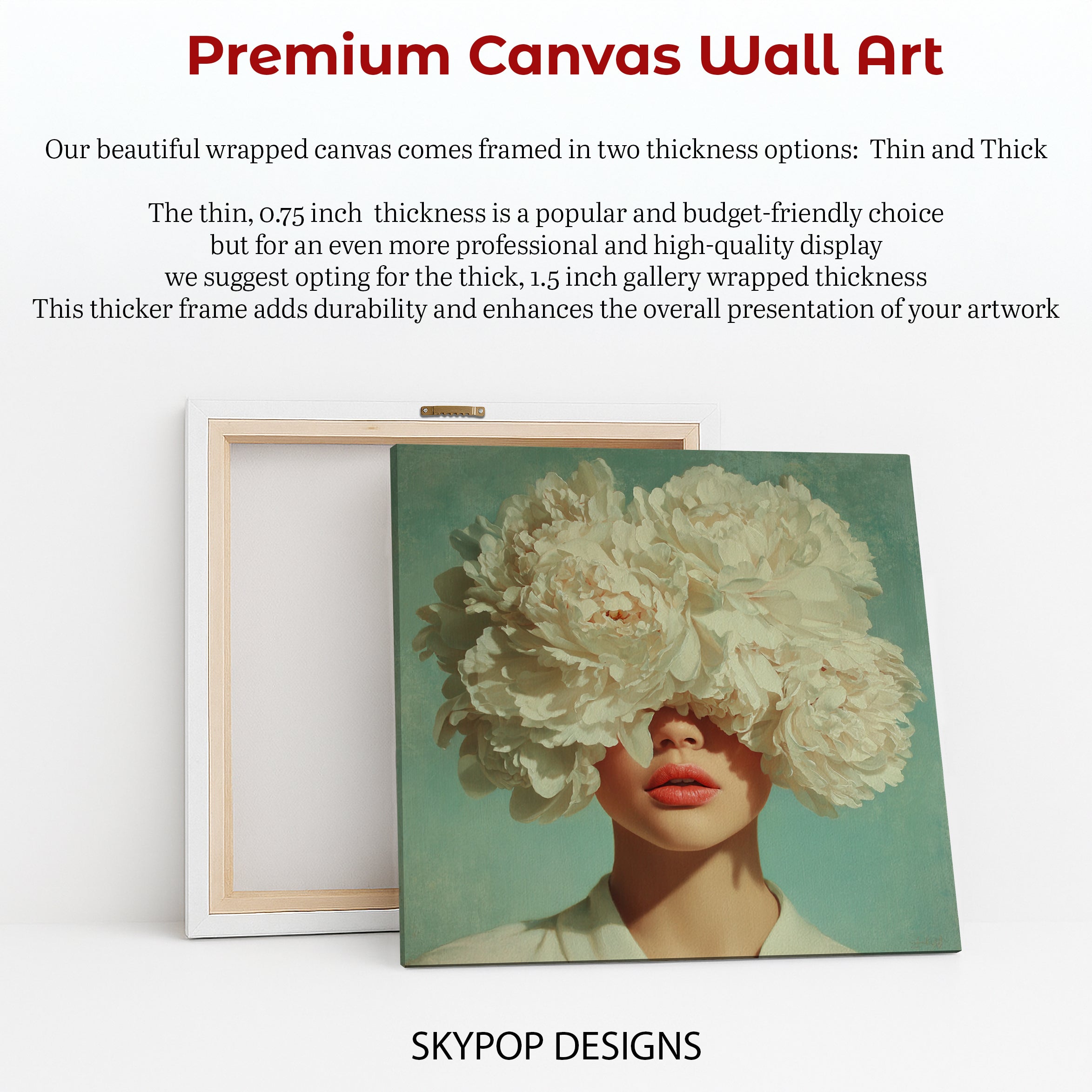 Keywords: Floral Art, Figurative Art, Art Nouveau, Glam Decor, Victorian Decor, Contemporary Decor, Bedroom Art, Living Room Art, Dining Room Art, Entryway Art, White Art, Multicolor Art, Teal Art, Peony Art, Floral Canvas, Wall Art, Canvas Art, Home Decor, Fine Art, Elegant Art, Romantic Decor, Beautiful Art, Housewarming Gift, Birthday Gift, Luxury Art, Statement Piece, Interior Design, Wall Decor, Bloom Portrait, Peony Bloom