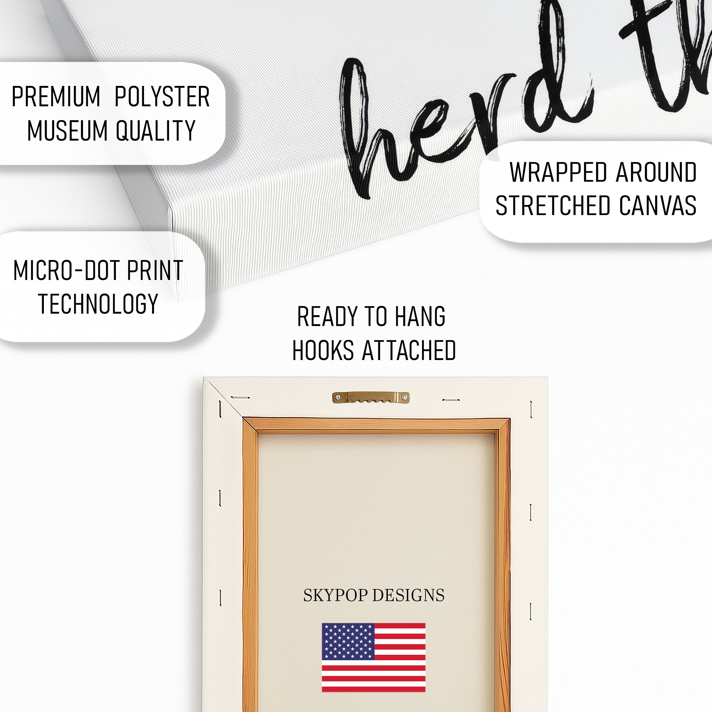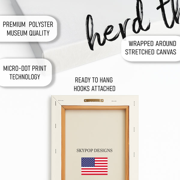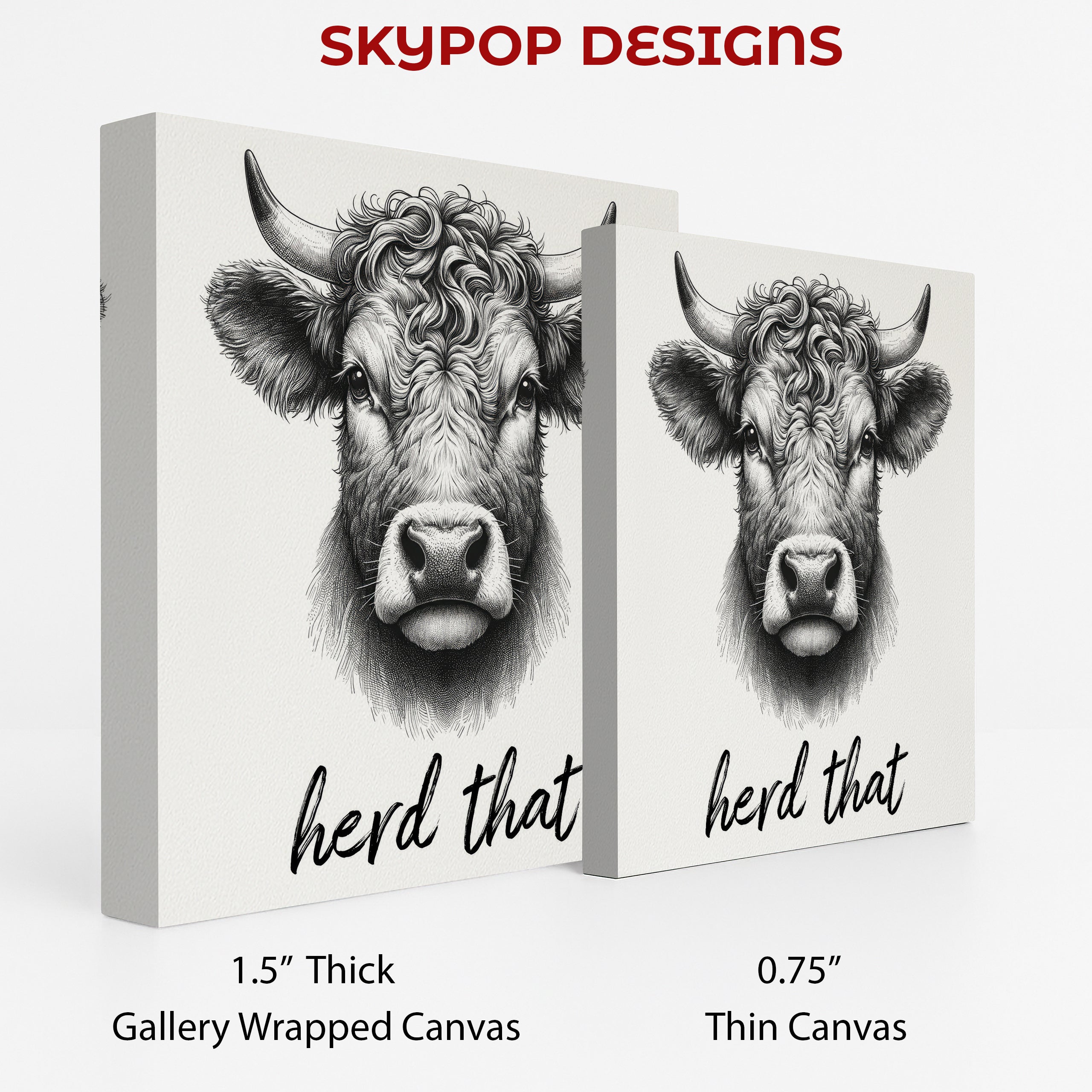 Transform your space with this striking Highland Cow canvas wall art, featuring a bold black and white portrait with the witty phrase herd that. This captivating poster or canvas wall art brings a touch of farmhouse charm and rustic appeal to any room. The detailed linework of the Highland Cow's shaggy coat and powerful horns adds a striking visual element, while the modern script makes a statement. Perfect for living rooms, kitchens, or entryways, this versatile artwork elevates your home decor with its unique blend of vintage artistry and contemporary attitude. This piece is ideal for homes embracing farmhouse, rustic, or even bohemian interior styles, offering a conversation-starting focal point. Showcase your love for farm animals with this high-quality canvas print that radiates personality and a touch of rebel spirit. The dramatic black and white palette creates a timeless look that complements various color schemes, enhancing the overall ambiance of your space. Whether you're seeking a unique housewarming gift or a standout piece for your own collection, this Highland Cow artwork delivers. Celebrate country living and bold design with this impressive poster and canvas wall art. Elevate your home's style and bring character to your walls today with this memorable herd that wall art.