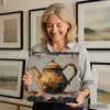 Vintage Teapot With Roses Art, Canvas or Poster, Still Life Traditional Rustic Decor, Kitchen Dining Room Wall Art, Brown Gold Red