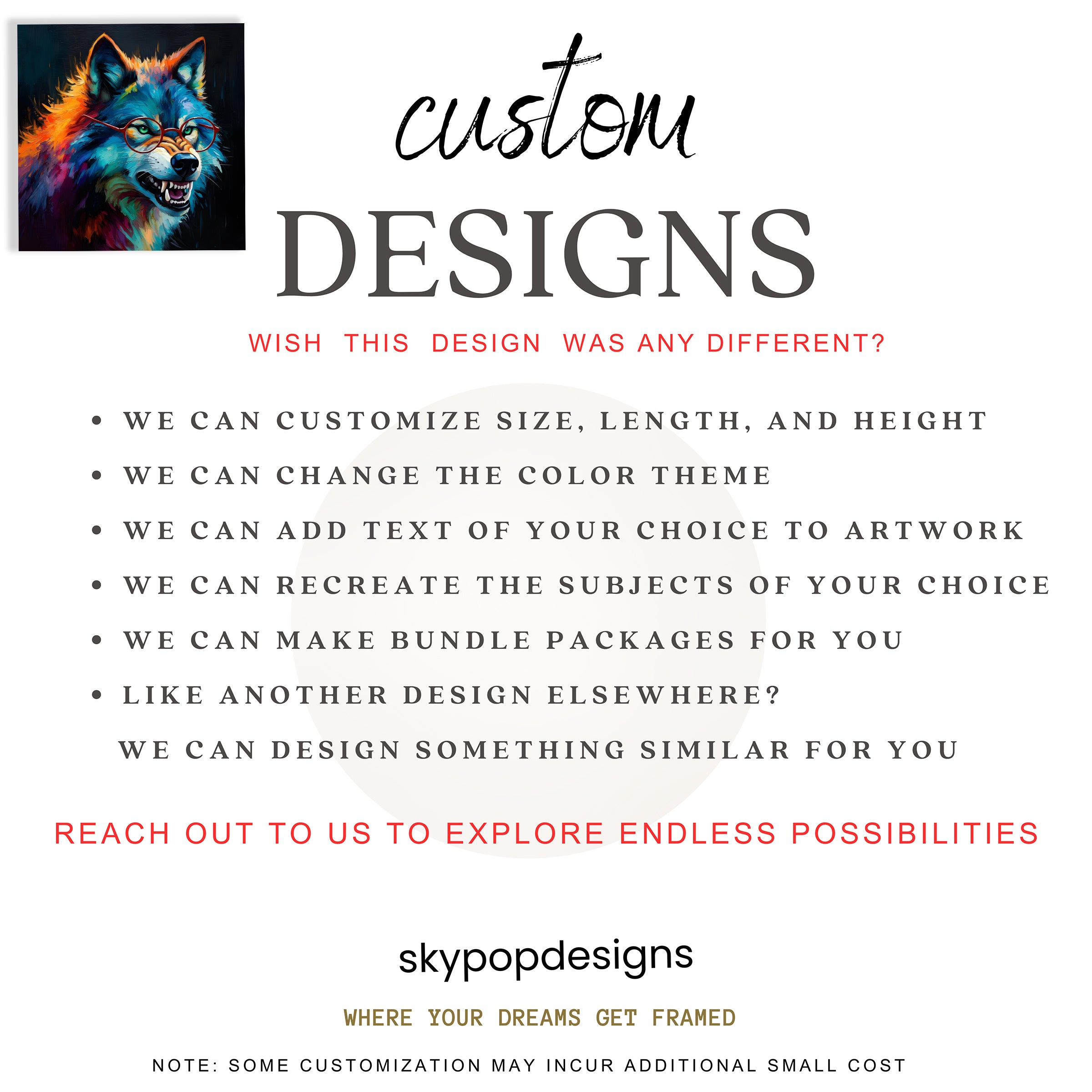 Looking for a custom design, or do you love a particular design but need it in a different size or orientation? Perhaps you've found a design elsewhere and wish for us to create something similar for you? Drop us a message! We're dedicated to meeting your needs and will work closely with you to ensure your vision comes to life.