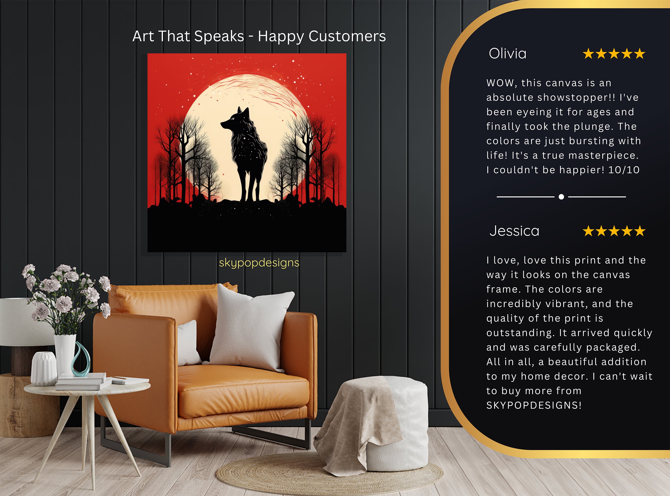 Keywords: Wolf Canvas Art, Lone Wolf Poster, Red Moon Art, Nature Wall Art, Animal Artwork, Figurative Art, Modern Decor, Scandinavian Style, Contemporary Art, Living Room Art, Bedroom Decor, Entryway Art, Office Wall Art, Red Black White Art, Yellow Accents, Wolf Art Print, Wild Animal Art, Moonlit Landscape, Home Decor, Wall Art Collection, Gift for Nature Lover, Unique Wall Decor, Bold Wall Art, Statement Piece, Modern Art Print, Canvas Poster, Home Atmosphere, Raw Beauty, Mystique of Wolves, Untamed Spirit