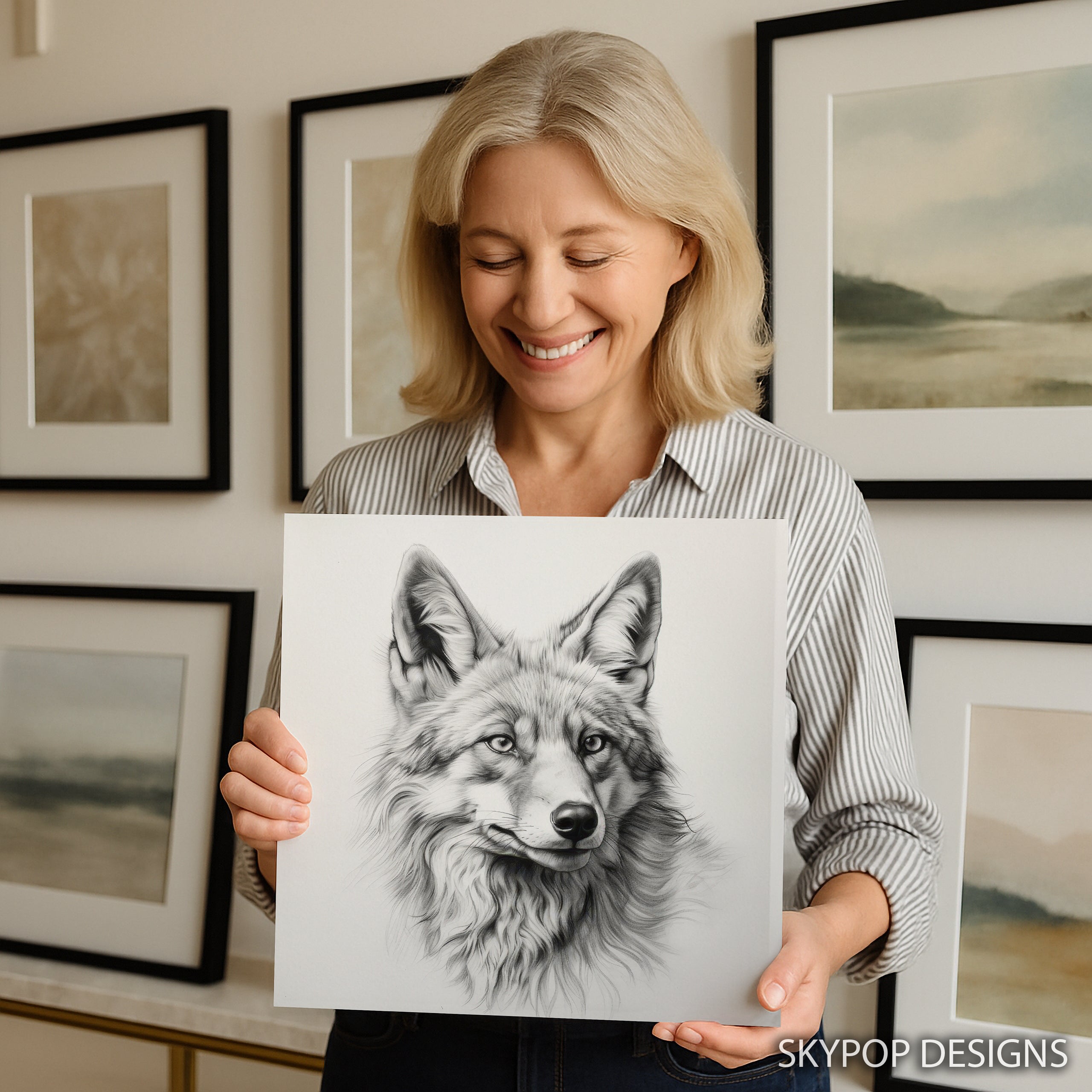 Elevate your home with this striking Wolf canvas wall art, a beautiful black and white portrayal that captures the wild spirit of a wolf. This detailed graphite drawing, rendered as high-quality canvas wall art or poster, showcases the animal's intense gaze and textured fur with stunning realism. The monochromatic palette and focus on natural subjects make this piece a perfect fit for rustic, Scandinavian, or contemporary decor styles. Transform your living room, bedroom, or office with this captivating wolf poster that adds a touch of wilderness and sophistication. The intricate pencil work on this canvas art adds depth and visual interest, making it a standout piece in any art collection. It’s ideal for nature lovers and those who appreciate detailed animal art, offering a sense of connection to the natural world. As a versatile wall art option, it complements various color schemes and room designs, enhancing any space with its elegant simplicity. This wolf print is a thoughtful gift for birthdays, holidays, or housewarmings, bringing a sense of quiet strength and natural beauty to a new home. Enhance your wall decor with this timeless piece of animal art that promises to be a conversation starter. Make this exceptional wolf artwork the focal point of your interior design today.