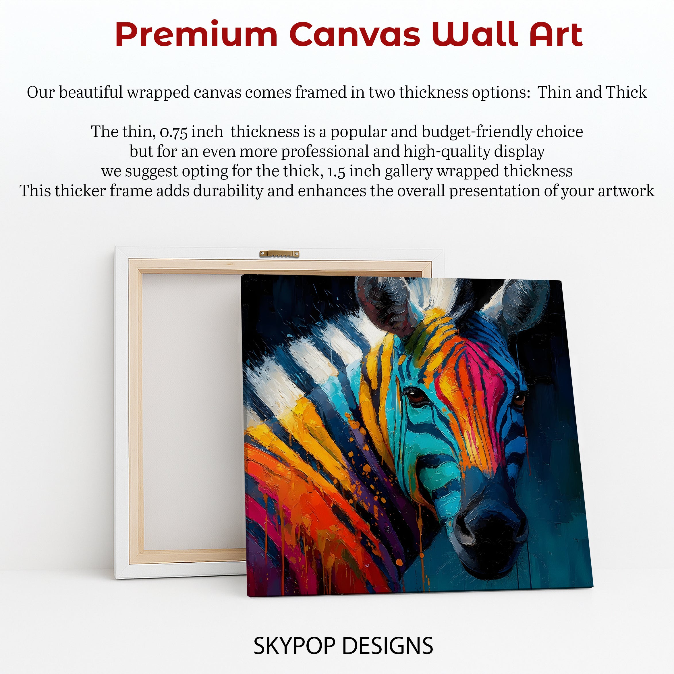 Keywords: Abstract Zebra Art, Animal Wall Art, Pop Art Zebra, Contemporary Decor, Modern Wall Art, Bohemian Art, Living Room Decor, Bedroom Wall Art, Office Art, Entryway Decor, Multicolor Art, Blue Orange Pink Art, Vibrant Zebra Art, Zebra Canvas Print, Splash Art, Statement Piece, Modern Home Decor, Eclectic Decor, Expressive Brushstrokes, Energetic Art, Inspiring Art, Joyful Decor, Art Lovers Gift, Housewarming Gift, Birthday Gift, Unique Wall Art, High Quality Canvas, Colorful Zebra Art, Animal Print, Wall Decor