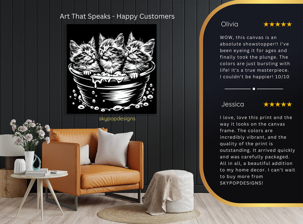 Keywords: Whimsical Art, Animal Art, Graffiti Art, Modern Decor, Bohemian Decor, Contemporary Decor, Living Room Art, Children's Room Art, Bedroom Art, Kitchen Art, Black and White Art, Multicolor Art, Cat Art, Bathtime Kitties Art, Canvas Wall Art, Poster Art, Graphic Design, Street Art Style, Minimalist Decor, Eclectic Decor, Housewarming Gift, Birthday Gift, Playful Art, Cute Cat Art, Feline Wall Art, Bubble Bath Art, Art for Home, Interior Design, Wall Decor, Adorable Kittens