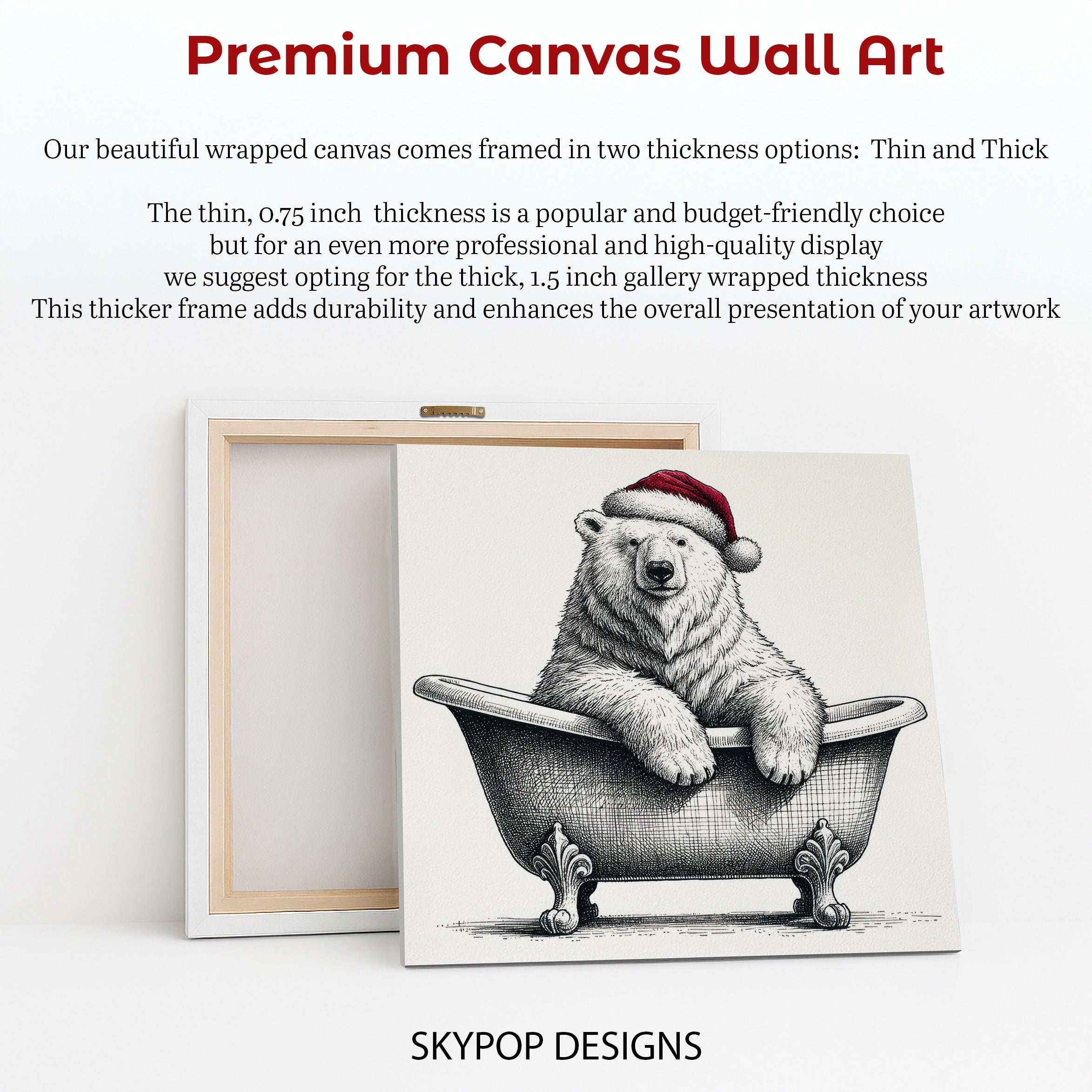 Keywords: Whimsical Art, Nature Art, Animal Art, Modern Decor, Contemporary Decor, Farmhouse Decor, Bathroom Art, Living Room Art, Bedroom Art, Children's Room Art, White Art, Black and White Art, Red Accents, Multicolor Art, Bear Art, Festive Bear Art, Polar Bear Art, Bath Decor, Santa Hat Art, Holiday Art, Christmas Art, Cozy Art, Playful Art, Wall Art, Canvas Print, Home Decor, Gift Ideas, Housewarming Gift, Wall Decor, Cheerful Atmosphere