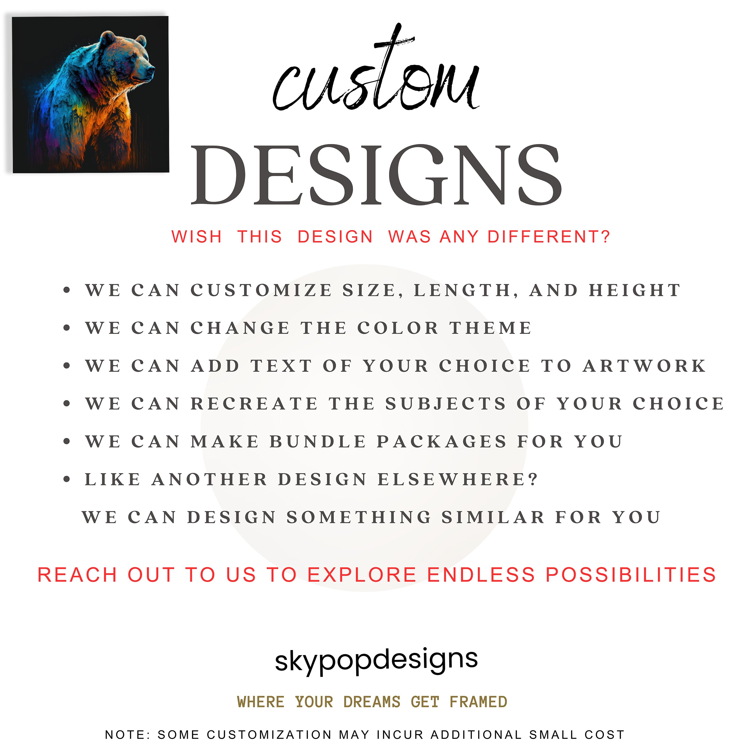 At SKYPOPDESIGNS, we specialize in high-quality canvas and poster prints designed to bring sophistication and style to your space. Please note that our designs are not created with 3D textures or as original oil, acrylic, or watercolor paintings; they are instead HD reproductions of original artwork. This approach allows us to offer these visually stunning pieces at competitive prices, ensuring you receive top-tier, maintenance-free art that's easy to enjoy.