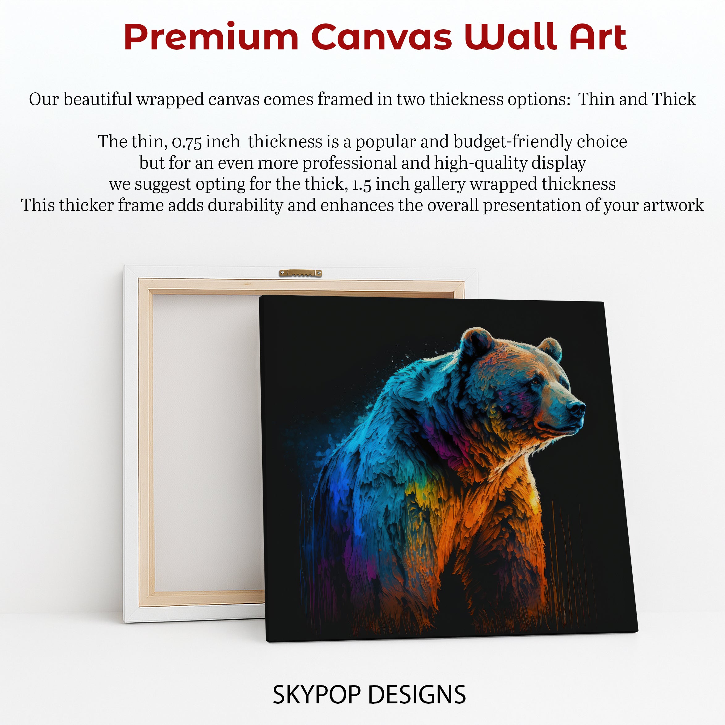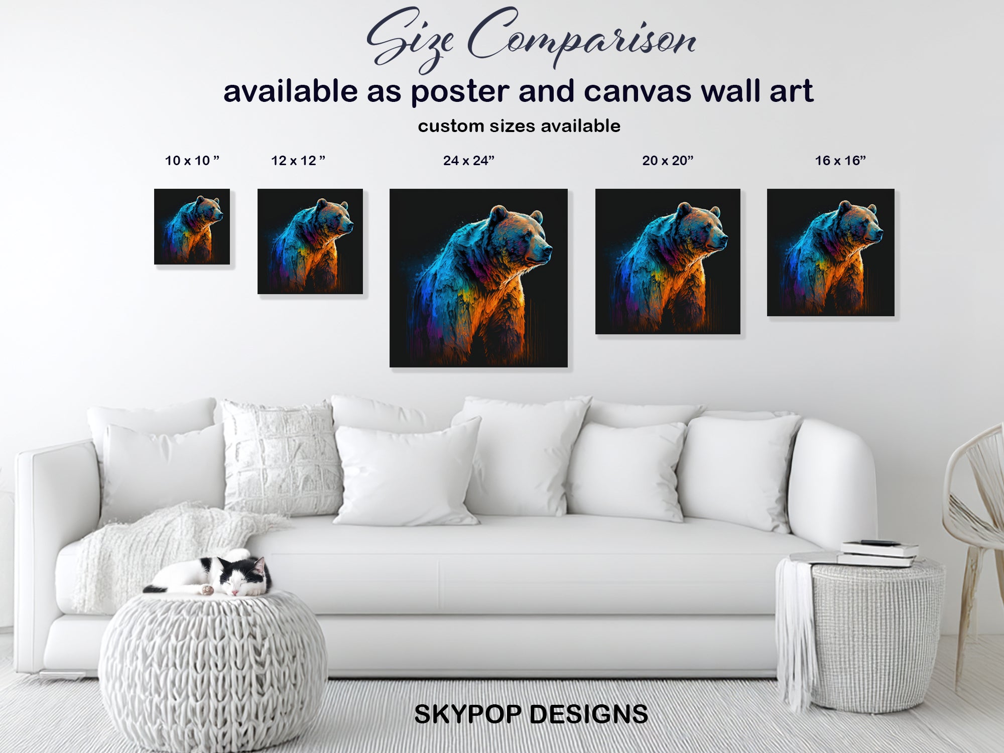 Keywords: Abstract Bear Art, Animal Canvas Wall Art, Vibrant Wall Art, Multicolor Bear Poster, Contemporary Living Room Decor, Modern Bedroom Art, Bohemian Office Wall Decor, Nature Inspired Art, Blue Orange Purple Art, Majestic Bear Portrait, Abstract Animal Painting, Framed Canvas Print, Wildlife Wall Decor, Statement Wall Art, Unique Home Decor, Artistic Bear Artwork, Housewarming Gift, Birthday Present, Nature Lover Gift, Art Enthusiast Gift, Colorful Canvas Art, Entryway Wall Decor, Blue and Orange Art, Bold Animal Art, Modern Abstract Decor, Boho Chic Art, Fine Art Print, Wall Decor for Home, Living Room Art, Bear Silhouette Art