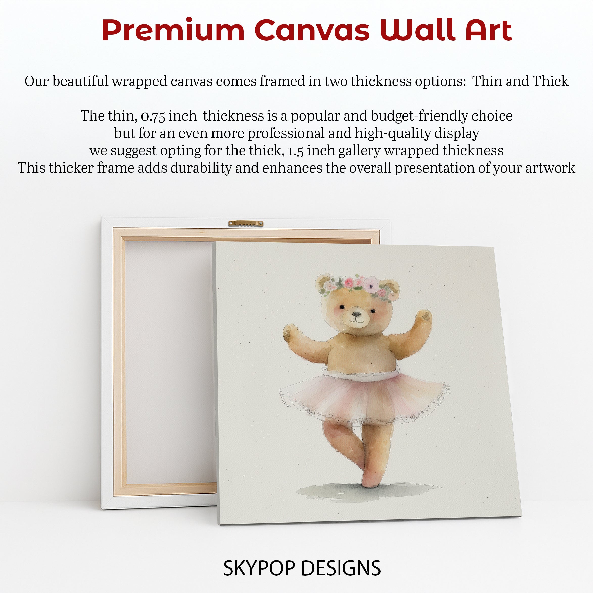 Keywords: Whimsical Bear Art, Ballet Bear Canvas, Watercolor Animal Art, Pink Bear Decor, Childrens Room Art, Nursery Wall Art, Bohemian Decor, Nature Inspired Art, Bear Ballet Poster, Floral Crown Art, Teddy Bear Wall Art, Girl Nursery Decor, Kids Bedroom Art, Entryway Wall Decor, Multicolor Art Print, Brown Bear Artwork, White Background Art, Joyful Home Decor, Innocent Art Charm, Cozy Bedroom Style, Modern Living Room Art, Artistic Canvas Print, Gift for Kids, Birthday Gift Idea, Baby Shower Gift, Housewarming Present, Cute Animal Art, Ballet Tutu Art, Floral Accent Art, Enchanting Wall Decor