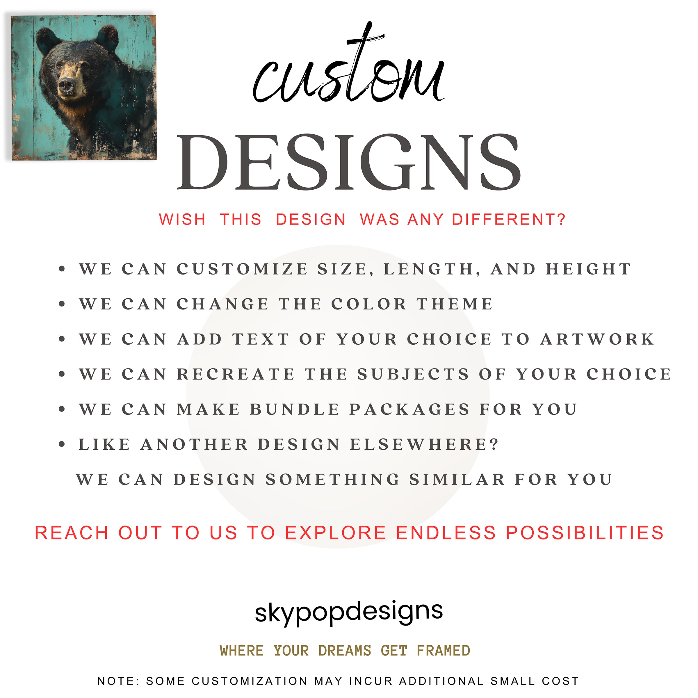Looking for a custom design, or do you love a particular design but need it in a different size or orientation? Perhaps you've found a design elsewhere and wish for us to create something similar for you? Drop us a message! We're dedicated to meeting your needs and will work closely with you to ensure your vision comes to life.
