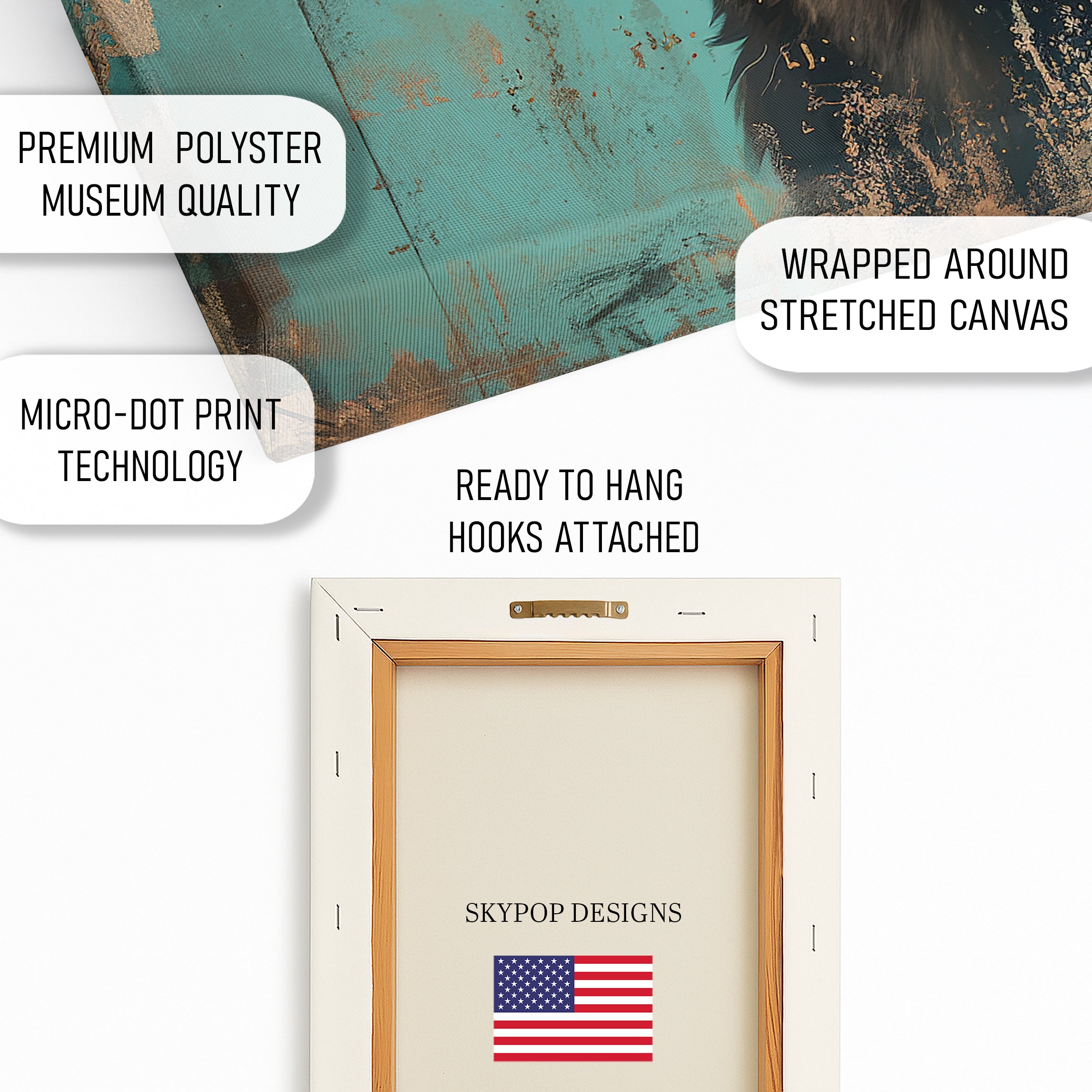 Keywords: Bear Canvas Art, Animal Wall Art, Nature Inspired, Rustic Decor, Farmhouse Style, Modern Art, Abstract Bear, Moody Art, Brown Teal Gold, Living Room Art, Bedroom Decor, Entryway Art, Office Wall Decor, Wildlife Art, Bear Portrait, Home Decor, Wall Decor, Canvas Print, Home Accent, Interior Design, Statement Piece, Housewarming Gift, Birthday Present, Art Collector, Nature Lover Gift, Textured Art, Wood Background, Cozy Home, Wild Animal Art, Unique Wall Decor