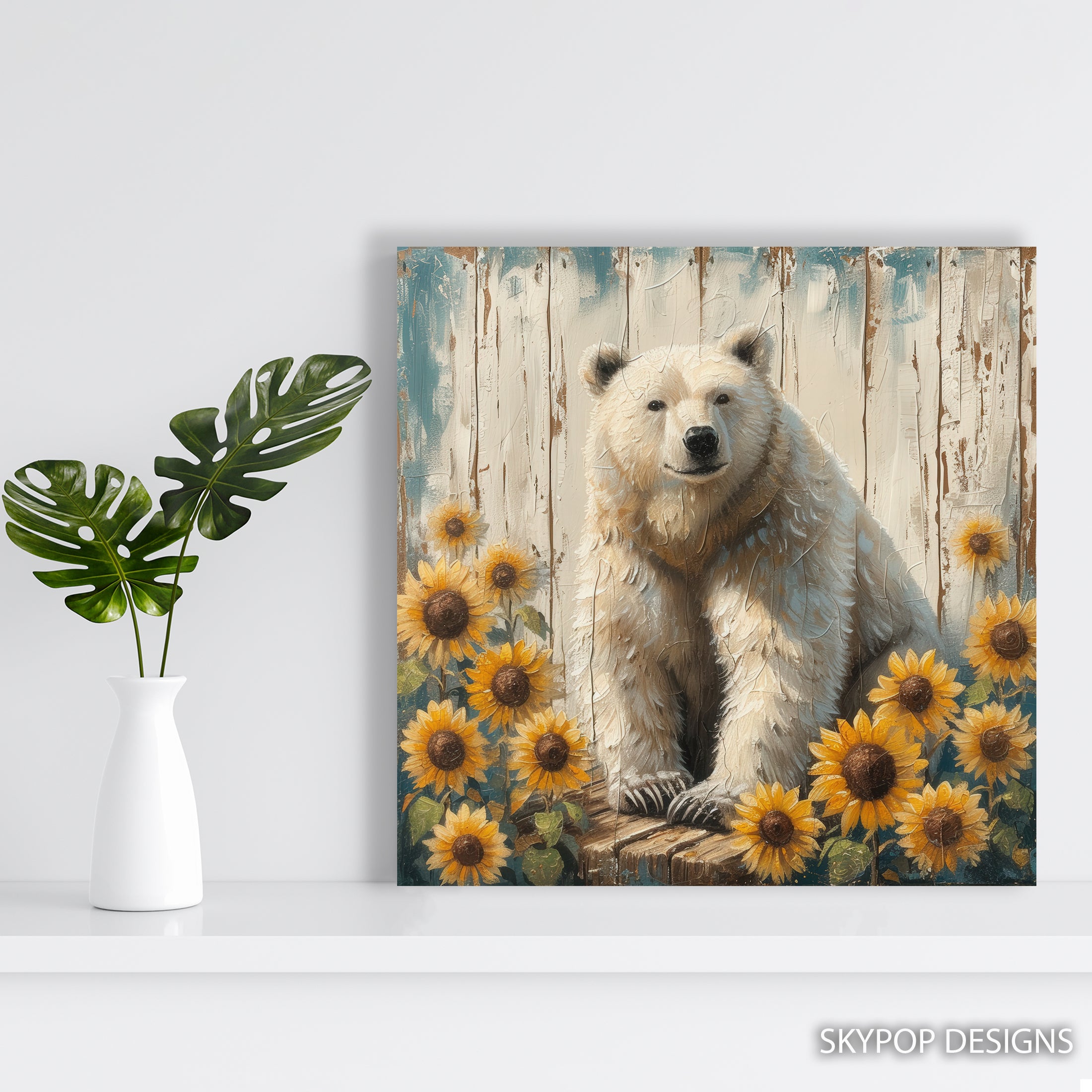 Keywords: Bear Canvas Art, Sunflower Wall Art, Yellow Wall Art, Brown Bear Art, Rustic Decor, Farmhouse Decor, Bohemian Decor, Nature Art, Animal Art, Whimsical Art, Living Room Art, Bedroom Art, Sunroom Decor, Entryway Decor, Multicolor Art, Blue Accents, Summer Day Art, Cheerful Wall Art, Cozy Home Decor, Inviting Art, Textured Brushstrokes, Wall Decor Collection, Nature Lovers Gift, Wildlife Art, Housewarming Gift, Birthday Present, Outdoor Theme, Bear Art Print, Sunflower Canvas, Home Atmosphere