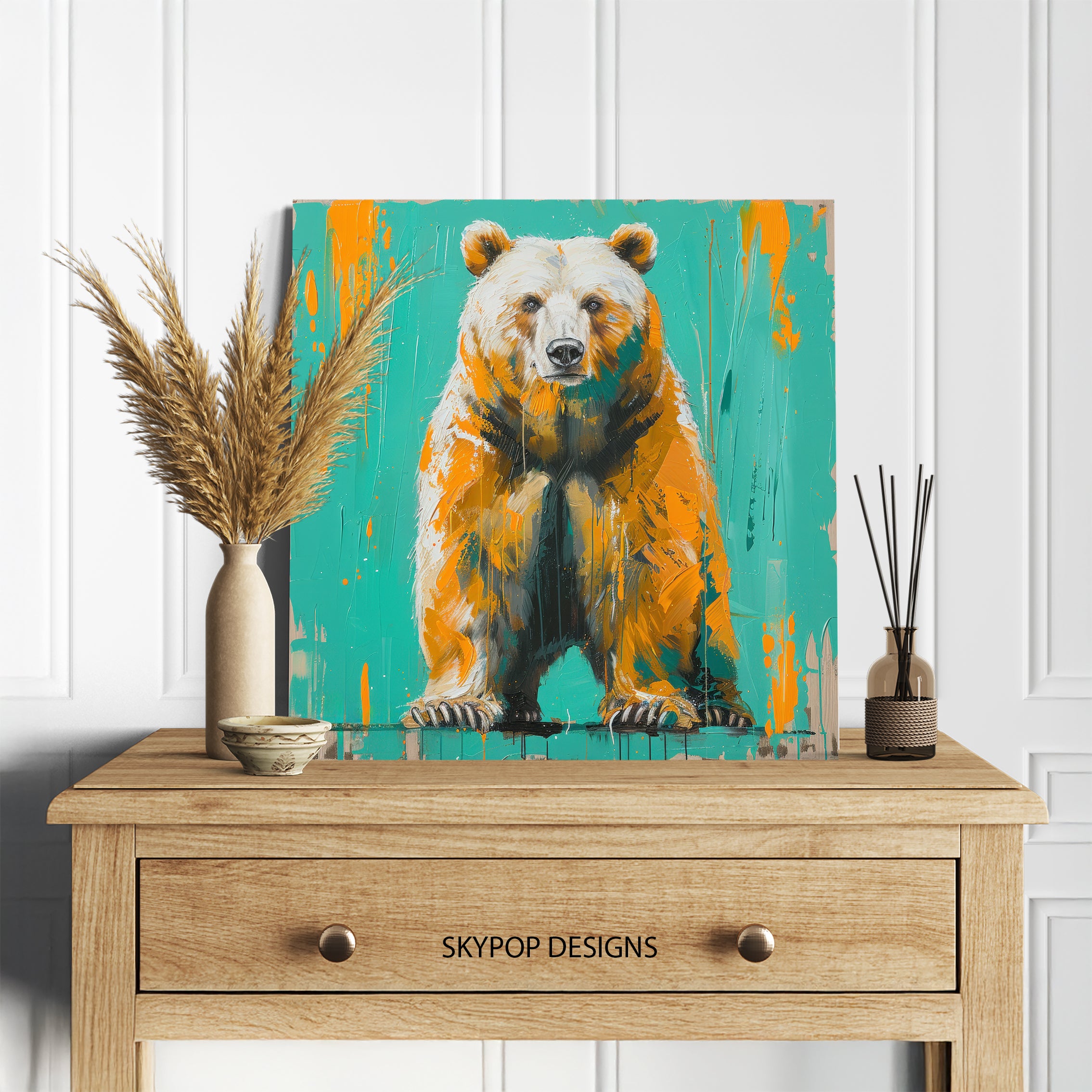 Keywords: Abstract Art, Animal Art, Contemporary Art, Modern Decor, Scandinavian Decor, Living Room Art, Bedroom Wall Art, Office Decor, Entryway Art, Teal Art, Orange Art, Brown Art, Black Art, Bear Art, Animal Poster, Canvas Wall Art, Bold Bear Portrait, Wall Decor, Home Decor, Unique Artwork, Statement Piece, Nature Lover Gift, Wildlife Art, Textured Art, Painterly Strokes, Vibrant Colors, Sophisticated Style, Modern Artistry, Wild Energy, Home Enhancement
