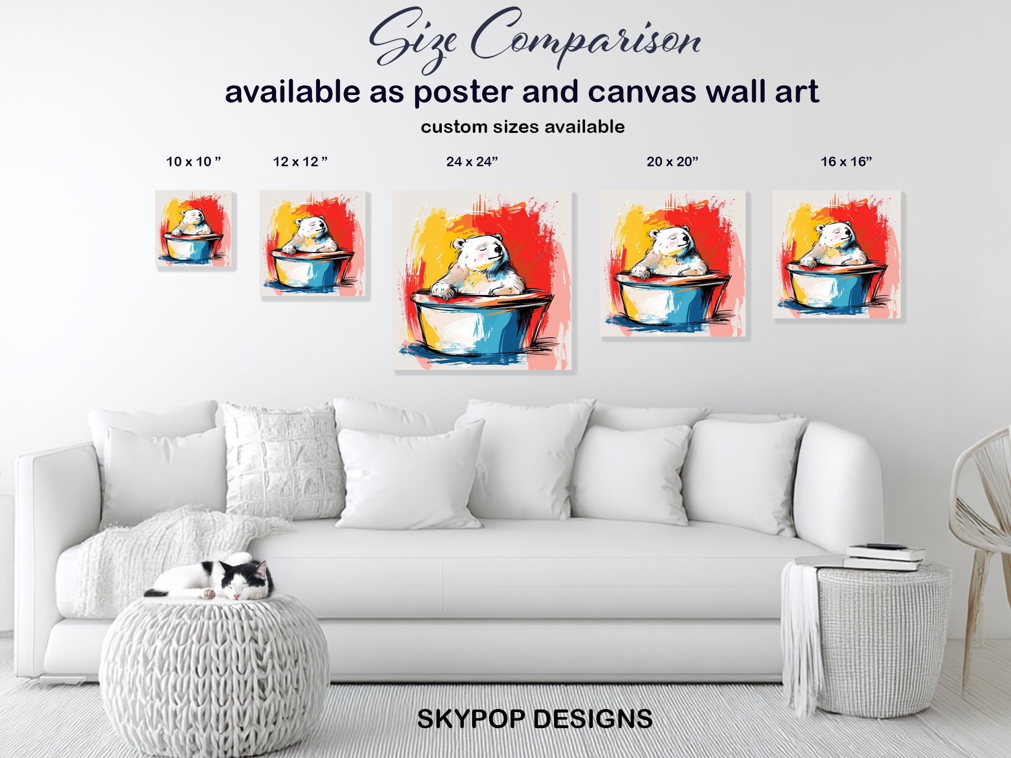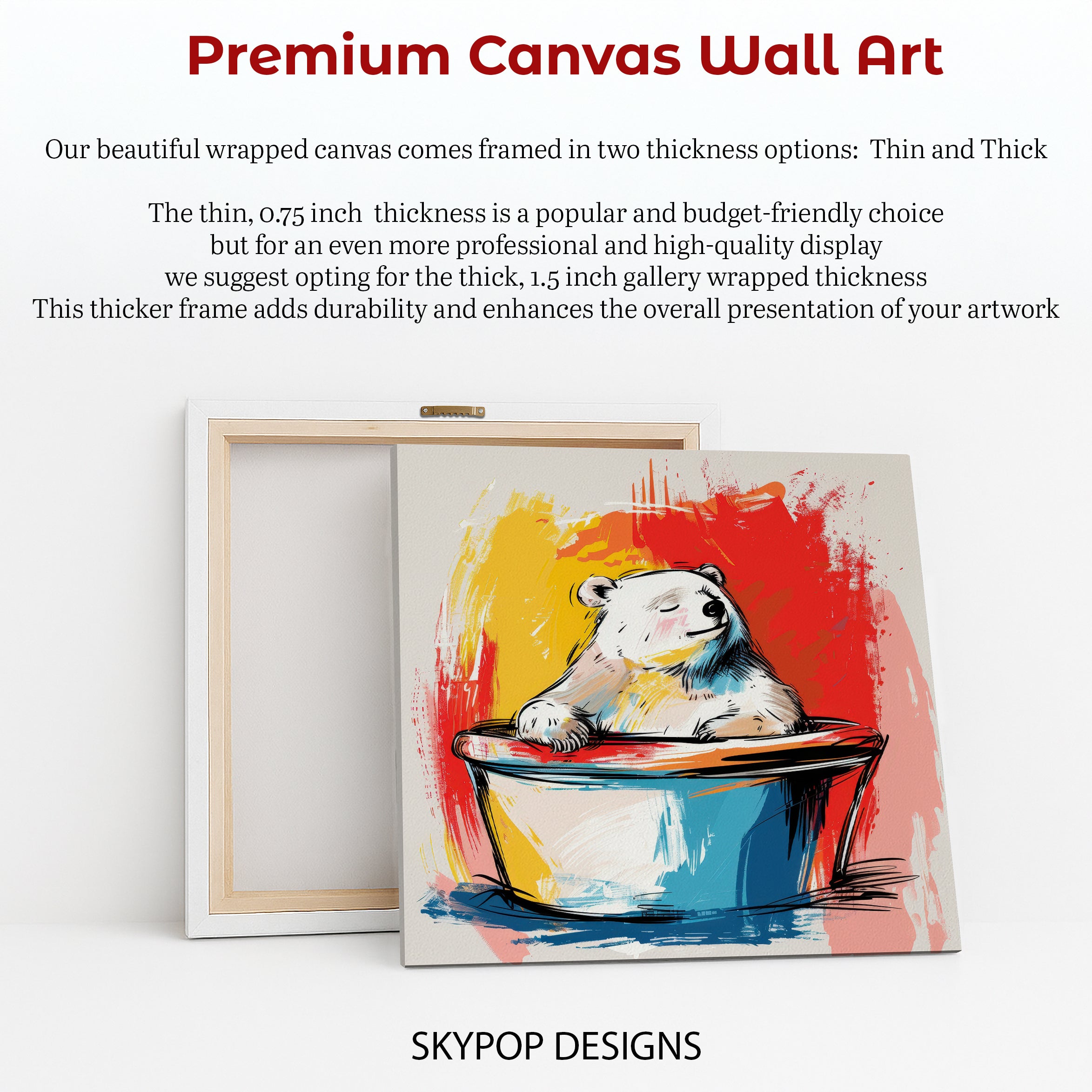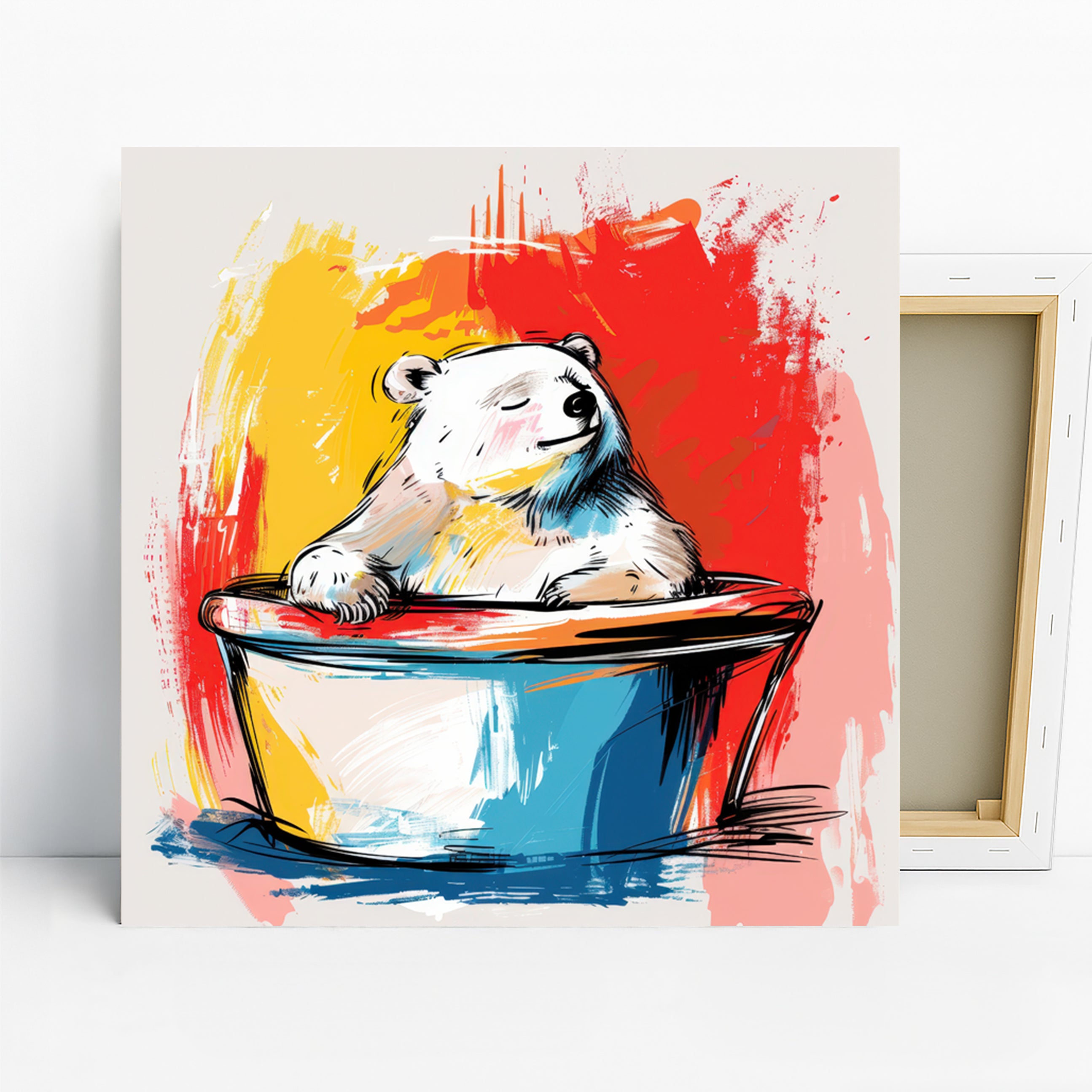 Transform your living space with this captivating Bear canvas wall art, showcasing a serene bear nestled in a vibrant bowl. The dynamic brushstrokes and bold colors of this abstract animal art piece create a striking focal point that adds personality and warmth to any room. This versatile poster or canvas wall art is perfect for modern living rooms, cozy bedrooms, or as a cheerful addition to a children's room or entryway. The playful use of multicolor, with pops of yellow and red against soothing blues, injects a sense of joy and calm into your home decor. This unique piece of nature art will elevate your walls, creating an inviting and inspiring atmosphere. It makes for a thoughtful gift for animal lovers or anyone looking to refresh their wall decor with something truly special. The abstract yet recognizable subject matter makes this canvas wall art a conversation starter. High-quality printing ensures the rich colors and detailed brushwork are displayed beautifully. Enhance your contemporary or minimalist decor with this charming bear artwork. Elevate your home today with this stunning canvas wall art and bring a touch of whimsical charm to your everyday life.