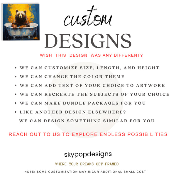 At SKYPOPDESIGNS, we specialize in high-quality canvas and poster prints designed to bring sophistication and style to your space. Please note that our designs are not created with 3D textures or as original oil, acrylic, or watercolor paintings; they are instead HD reproductions of original artwork. This approach allows us to offer these visually stunning pieces at competitive prices, ensuring you receive top-tier, maintenance-free art that's easy to enjoy.