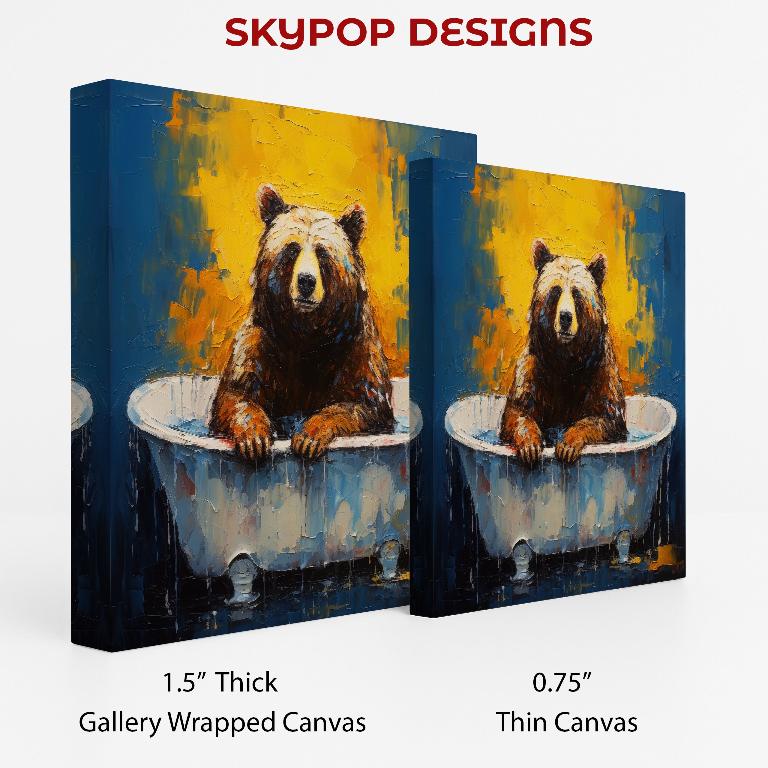 Keywords: Abstract Art, Animal Art, Contemporary Art, Modern Decor, Bohemian Decor, Living Room Art, Bathroom Decor, Game Room Art, Bedroom Wall Art, Blue Yellow Art, Brown White Art, Bear Canvas Art, Bear Bathtub Bliss, Quirky Wall Art, Playful Decor, Sophisticated Art, Vibrant Yellow, Deep Blue, Textured Brushstrokes, Conversation Starter, Home Haven, Fun Bathroom, Unique Addition, Personality Decor, Warmth Art, Relaxation Art, Whimsy Decor, Housewarming Gift, Joyful Art, Bear in Bathtub Print