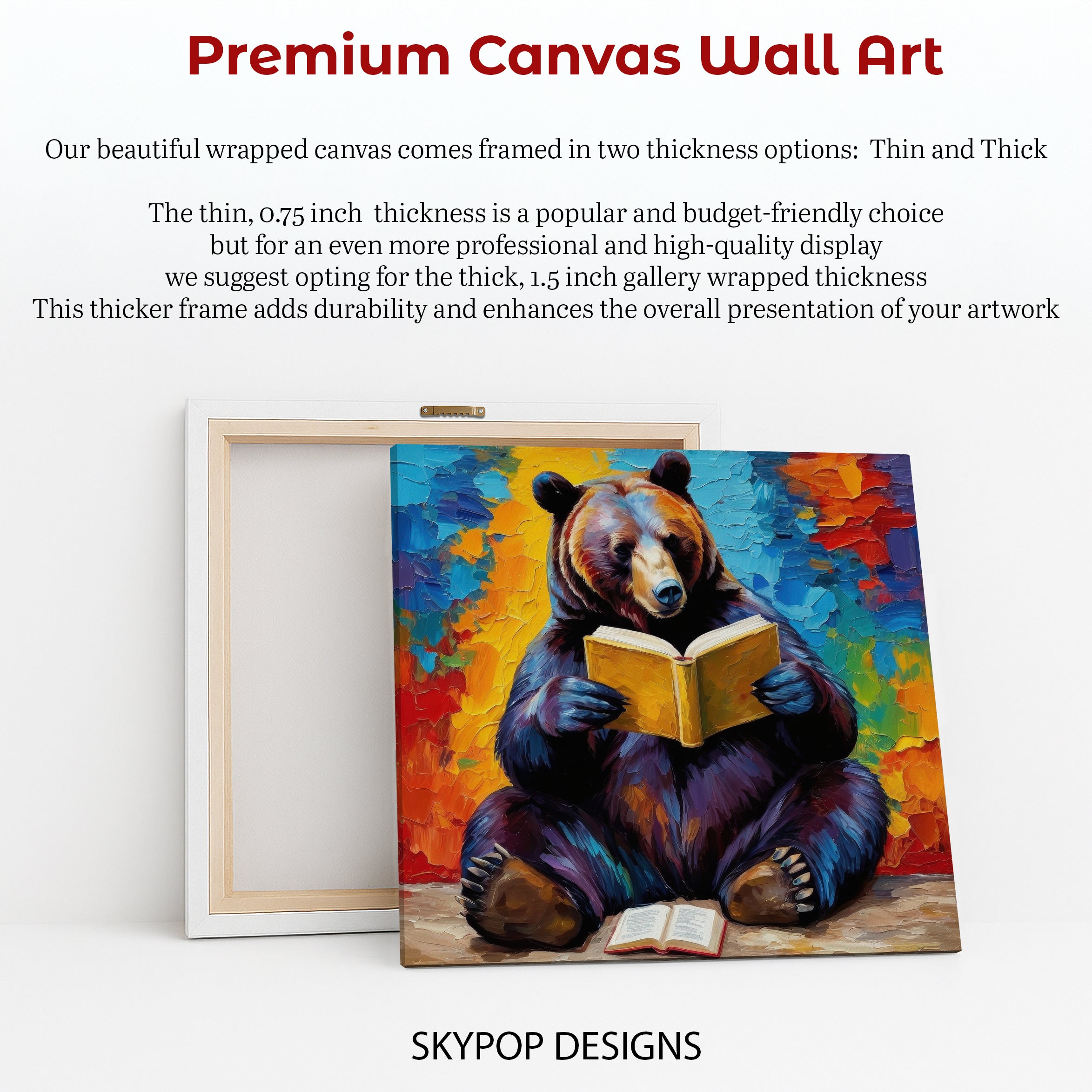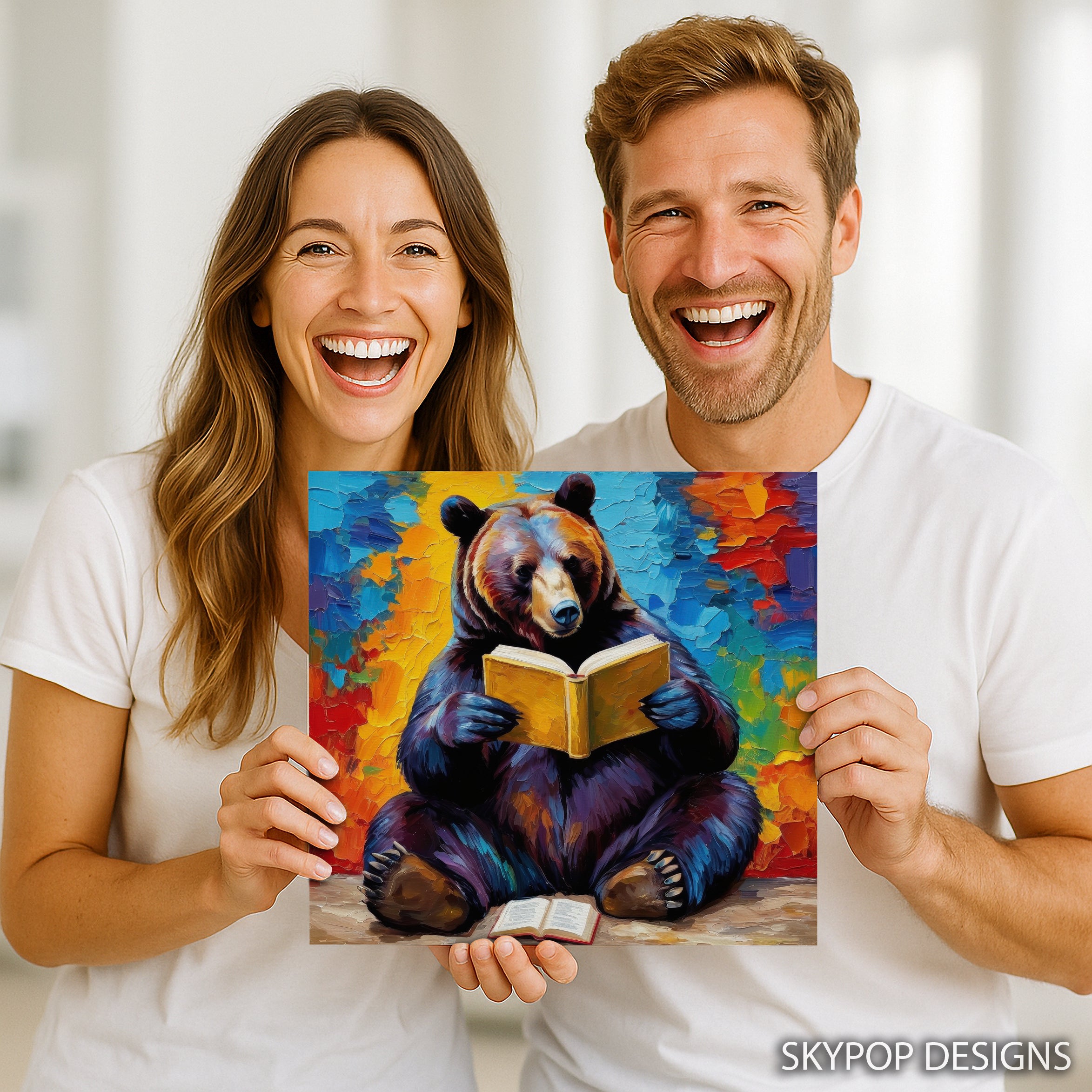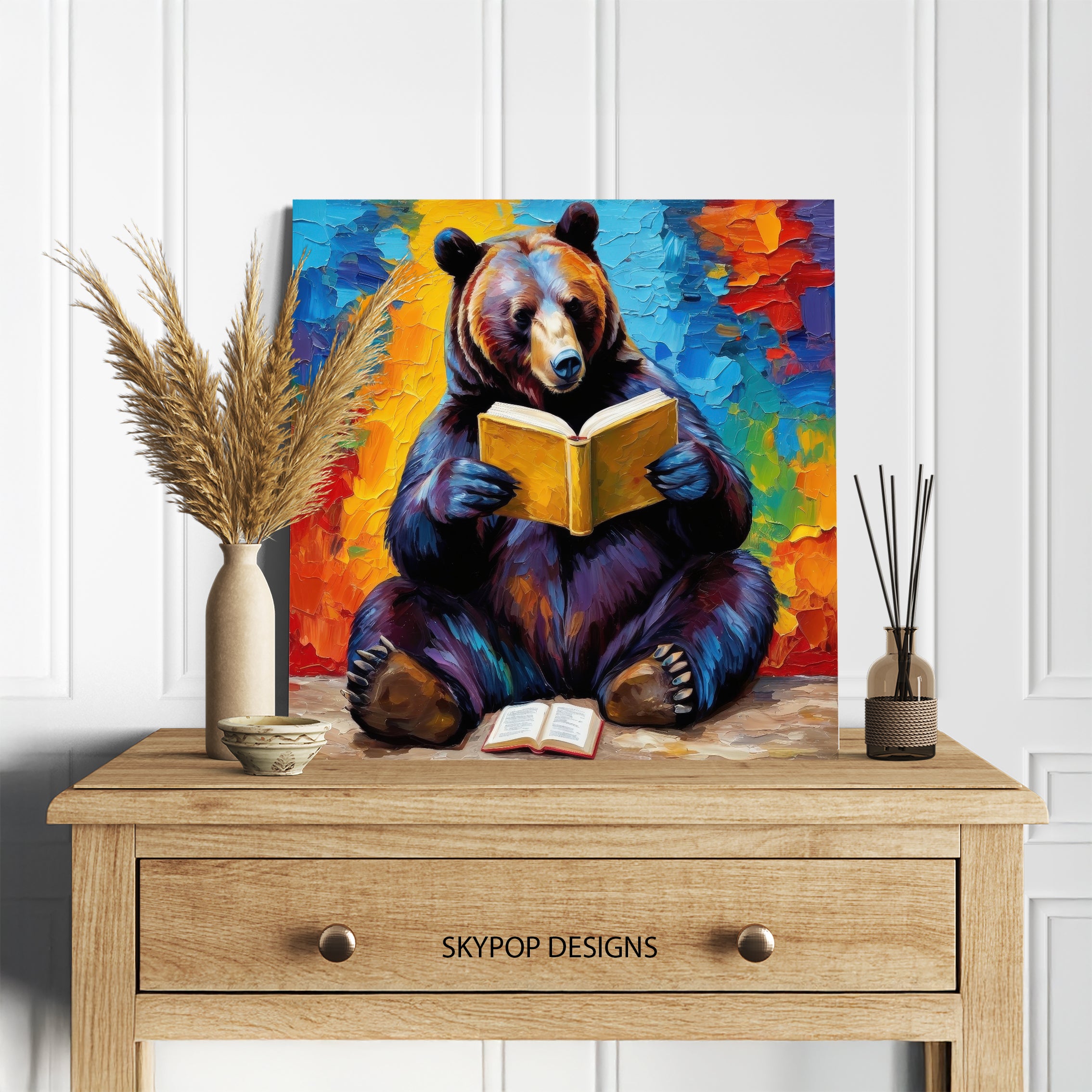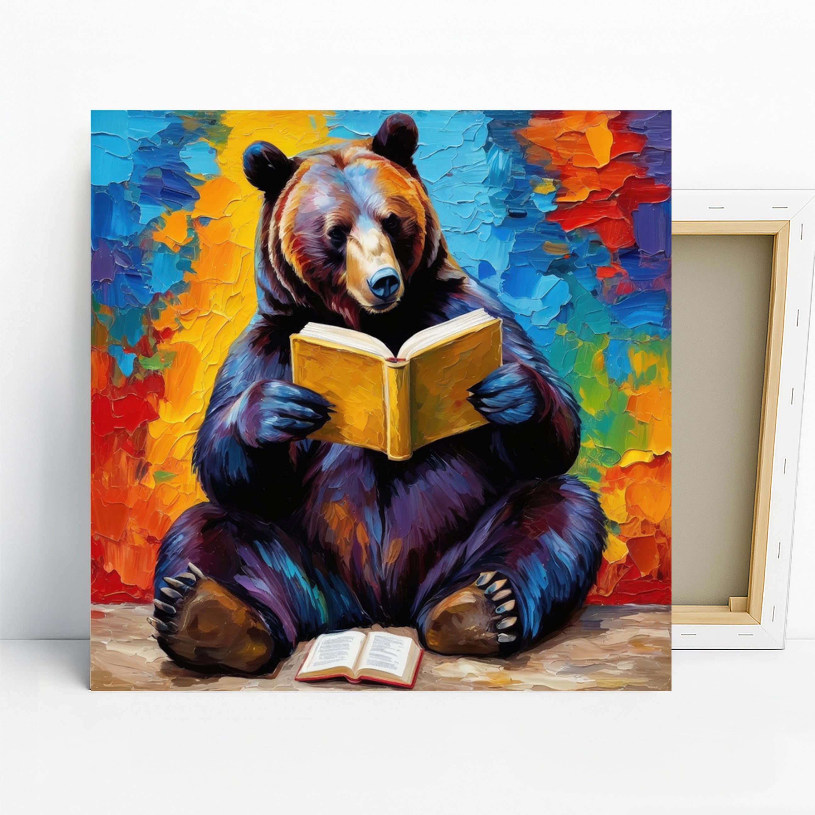 Keywords: Bear Reading Book Art, Canvas Wall Art, Nature Art, Whimsical Art, Bohemian Decor, Modern Decor, Rustic Decor, Living Room Art, Office Art, Library Art, Multicolor Art, Orange Art, Blue Art, Yellow Art, Bear Artwork, Animal Art, Impressionistic Art, Contemporary Art, Book Lover Gift, Unique Wall Decor, Housewarming Gift, Birthday Gift, Wildlife Art, Cozy Retreat, Intellectual Decor, Vibrant Colors, Bold Strokes, Wall Poster, Home Decor, Imagination Art