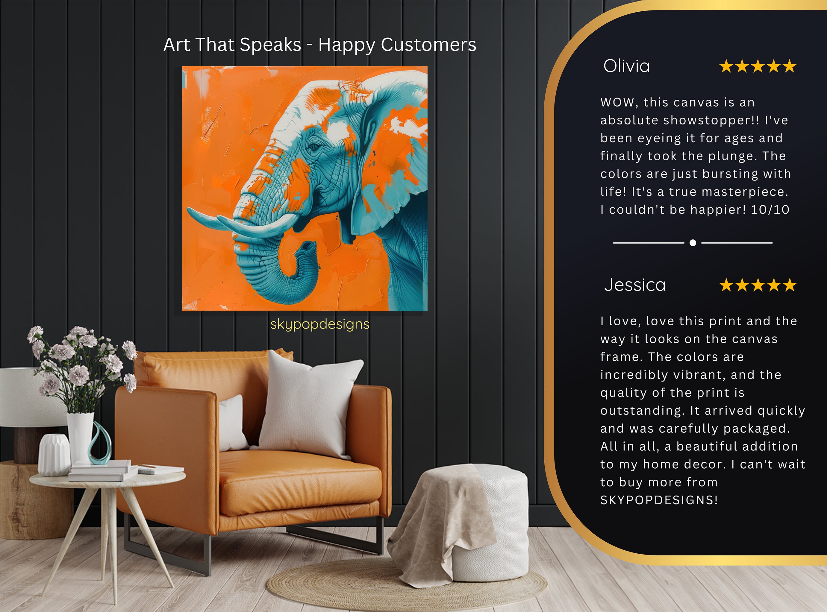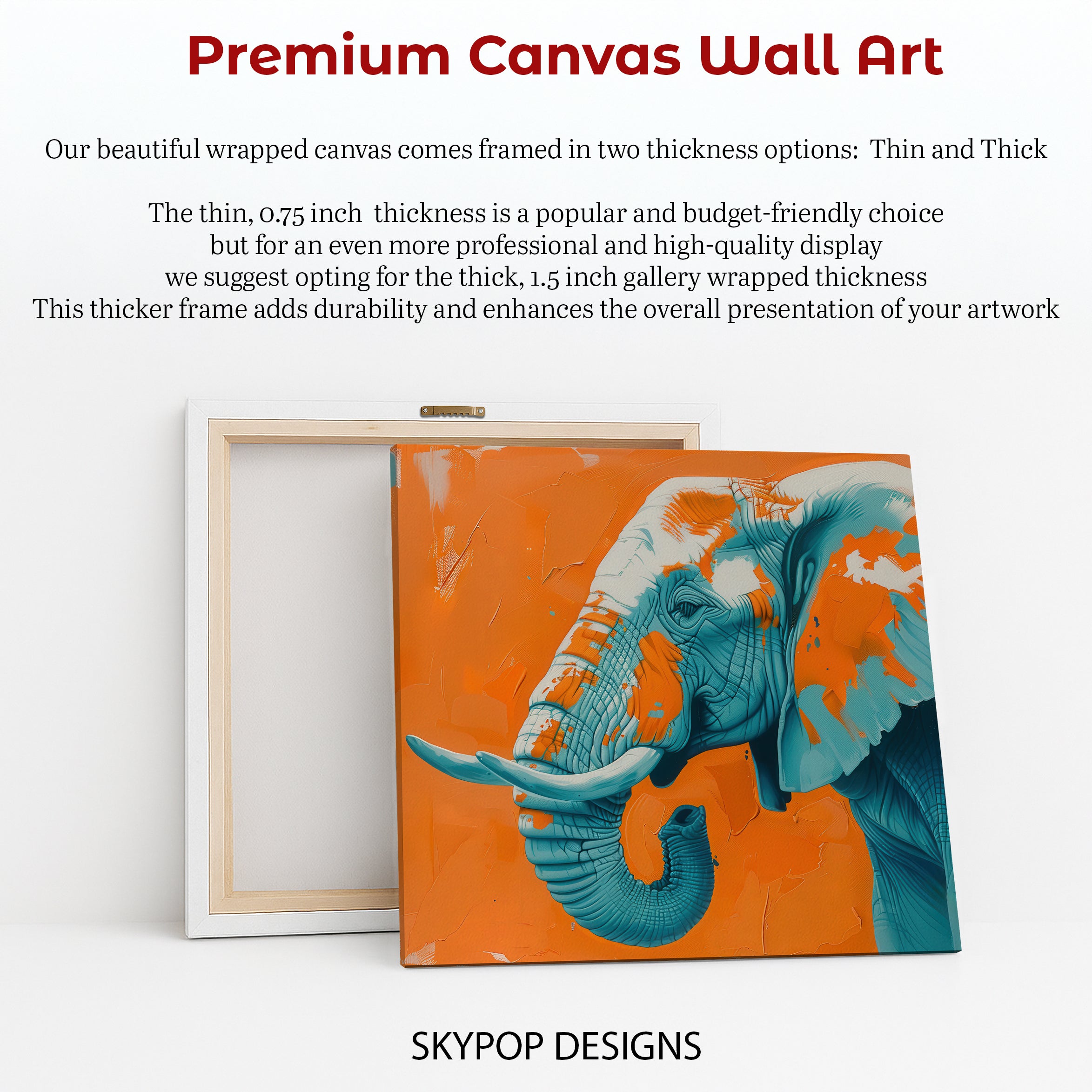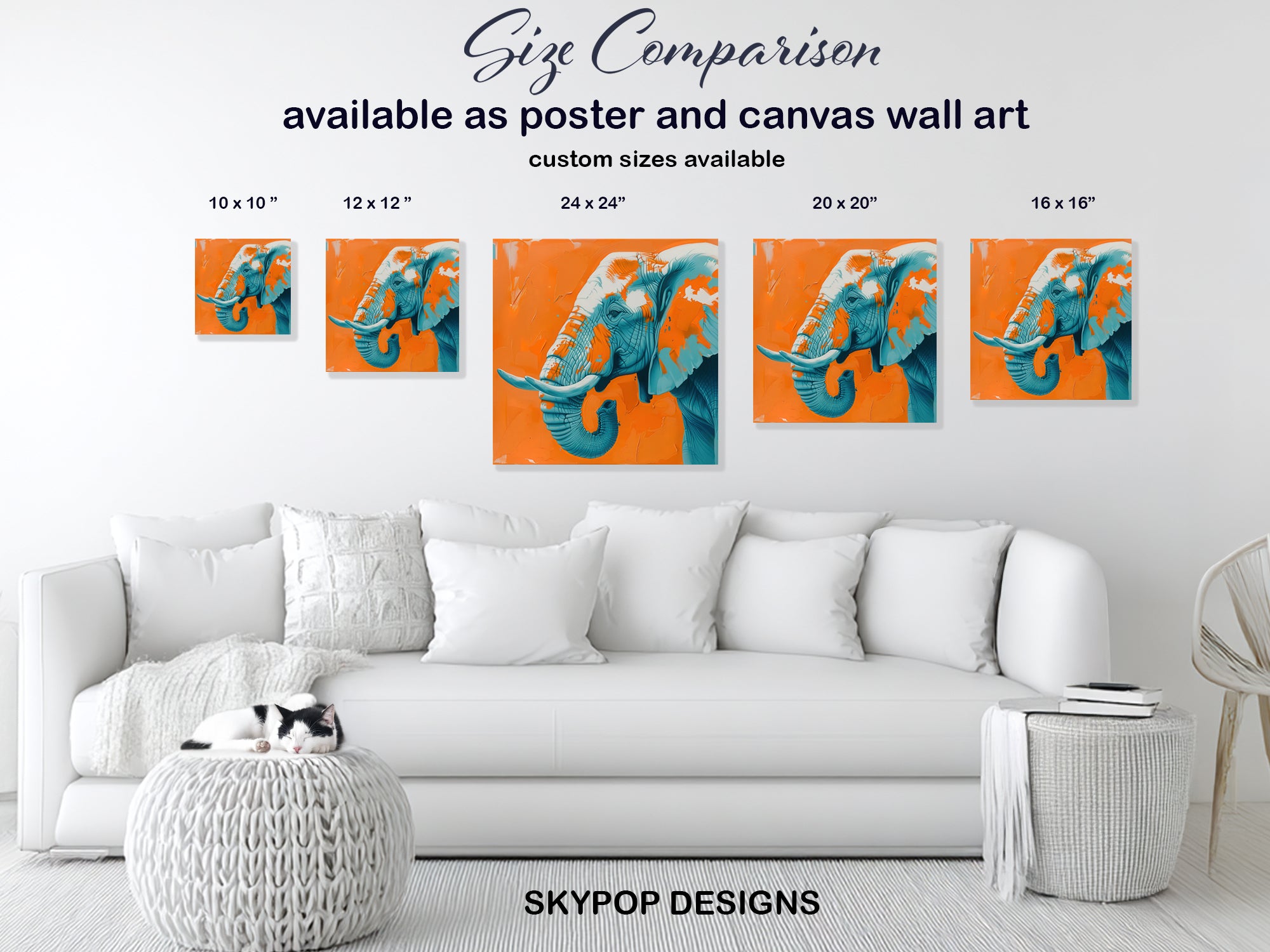 Keywords: Abstract Art, Teal Orange Elephant Art, Contemporary Wall Art, Modern Decor, Minimalist Art, Canvas Print, Elephant Poster, Nature Art, Living Room Art, Bedroom Wall Decor, Office Art, Entryway Accent, Bold Elephant Art, Sunset Orange Art, Teal Art, Animal Wall Art, Statement Piece, Textured Canvas, Expressive Art, Unique Interior Design, Home Decor Accent, Housewarming Gift, Vibrant Wall Art, Contemporary Elephant, Modern Home Decor, Wildlife Art, Textured Art Print, Evokes Calm, Evokes Energy, Sophisticated Art