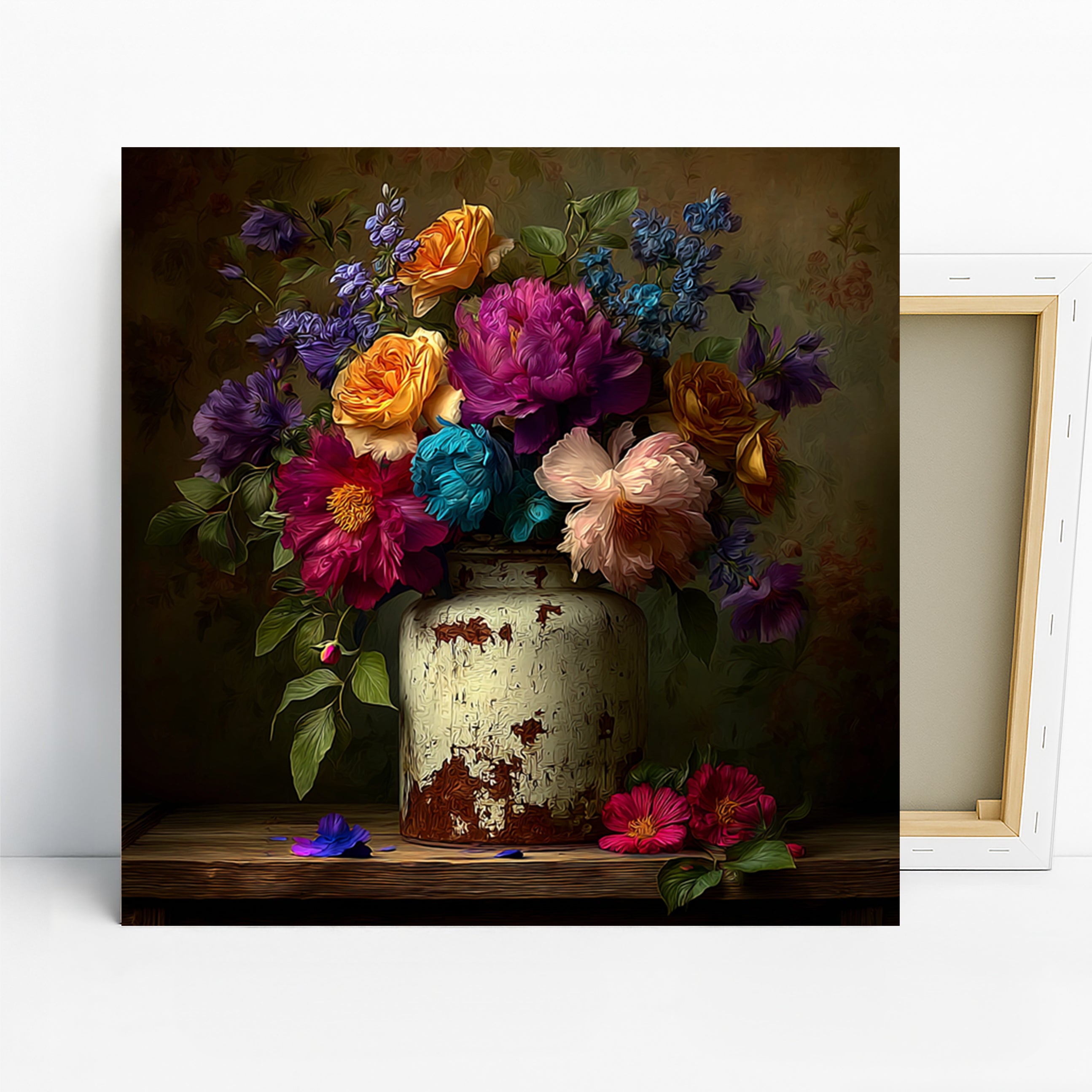 Keywords: Floral Art, Vintage Vase Art, Canvas Wall Art, Floral Poster, Classic Art, Still Life Art, Traditional Decor, Victorian Decor, Rustic Decor, Living Room Art, Dining Room Decor, Bedroom Wall Art, Entryway Decor, Multicolor Art, Green Floral Art, Brown Art, Purple Flowers, Vintage Floral Poster, Home Decor, Wall Decor, Housewarming Gift, Birthday Gift, Timeless Elegance, Vibrant Flowers, Textured Art, Botanical Print, Floral Canvas, Artistic Appeal, Natural Splendor, Classic Sophistication